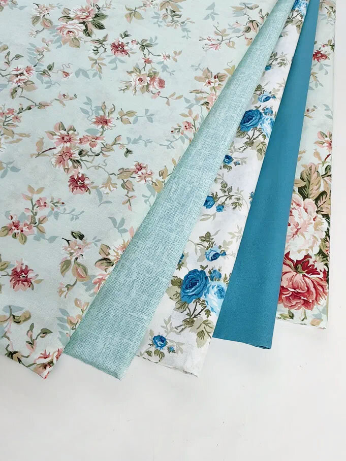 Ткань для шитья, рукоделия, 100% хлопок поплин Турция, набор тканей для пэчворка, бирюзовый-оливковый в стиле прованс, 4 отреза 50 х 60 см