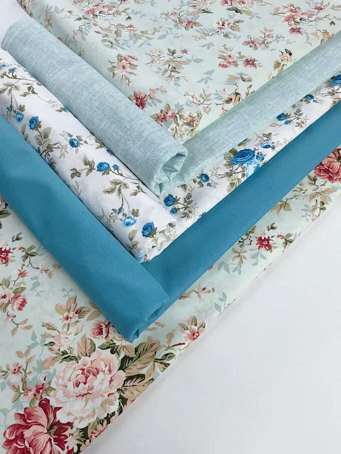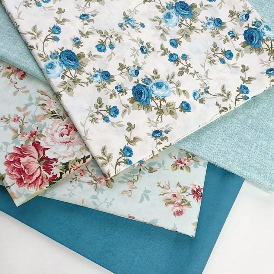 СохранитьТкань для шитья, рукоделия, 100% хлопок поплин Турция, набор тканей для пэчворка бирюзовый, синий в стиле Прованс, 5 отрезов 50 х 60 см интересное: