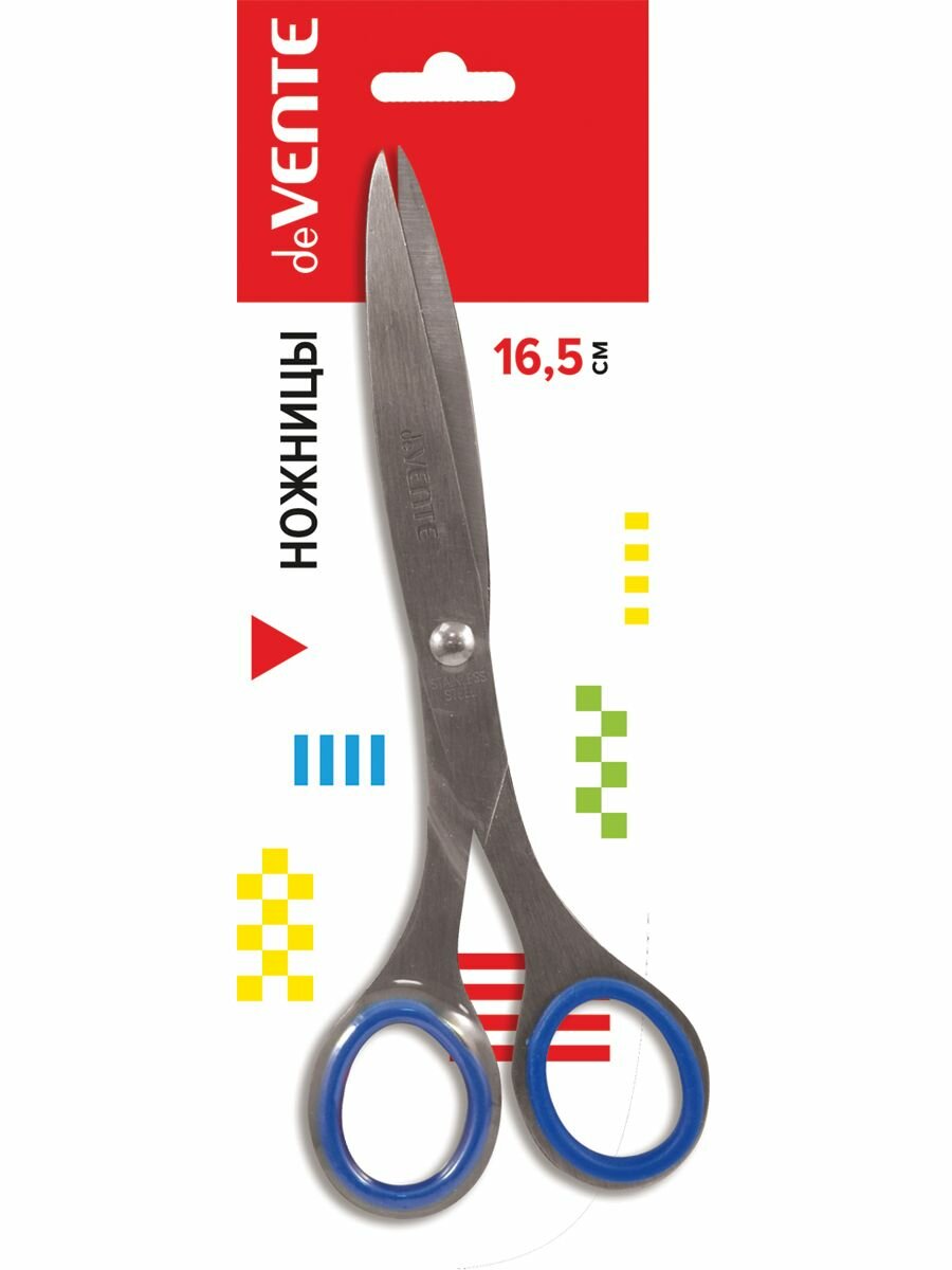 Купить Ножницы deVENTE "Solid", канцелярские, 16,5 см, цельнометаллические, прорезиненные симметричные кольца (4091701)