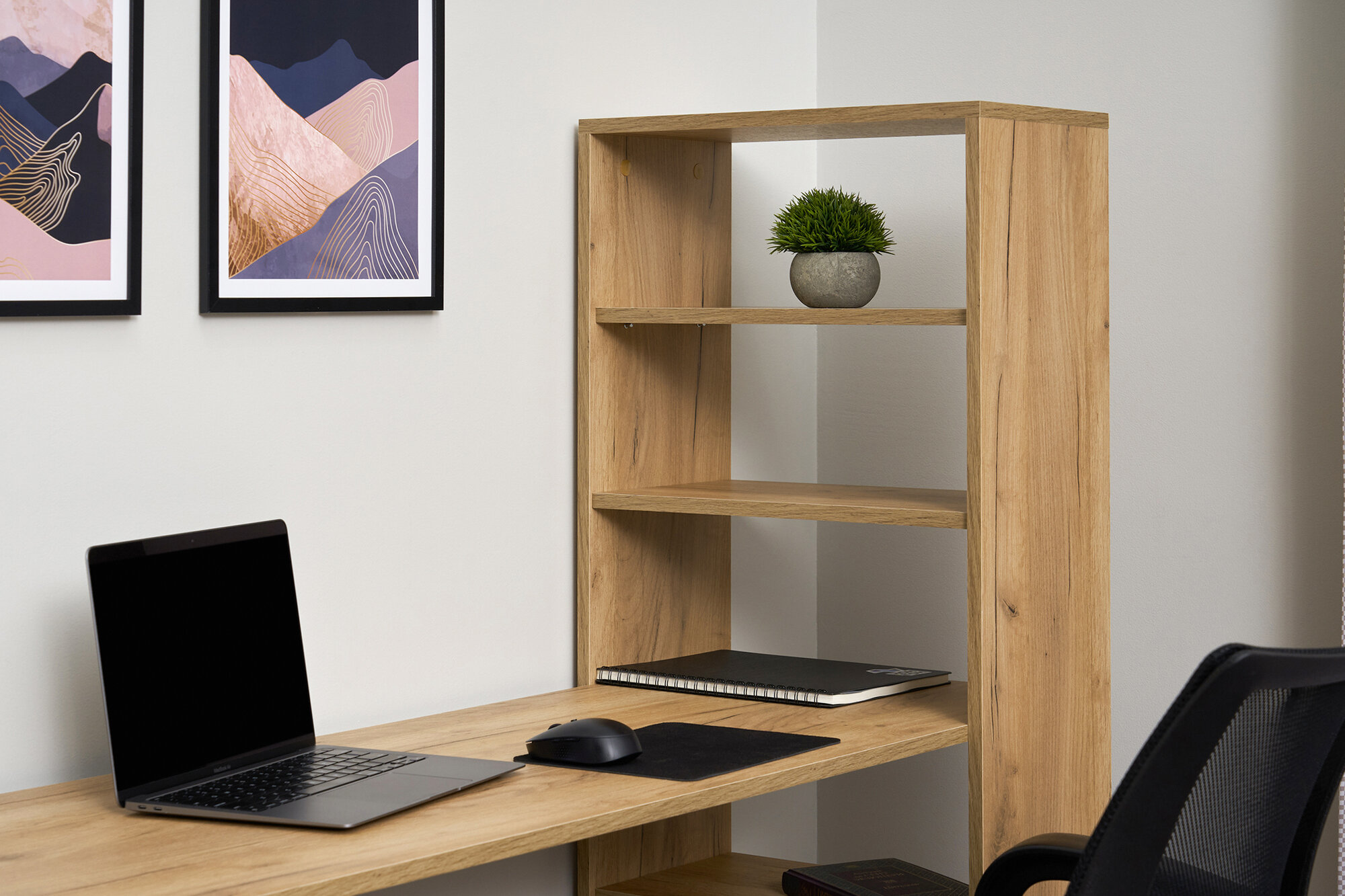 Стол письменный с ящиками и полками Нонтон Гранд графит серый / дуб крафт золото, 145x50.2x135 см