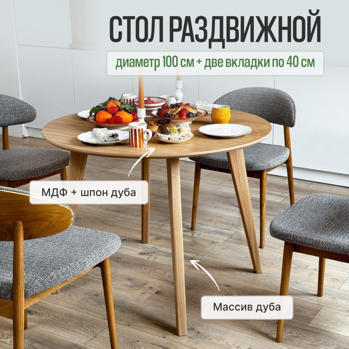 Кухонный обеденный стол - трансформер раздвижной из дерева Шпон Дуба 100x100x75см