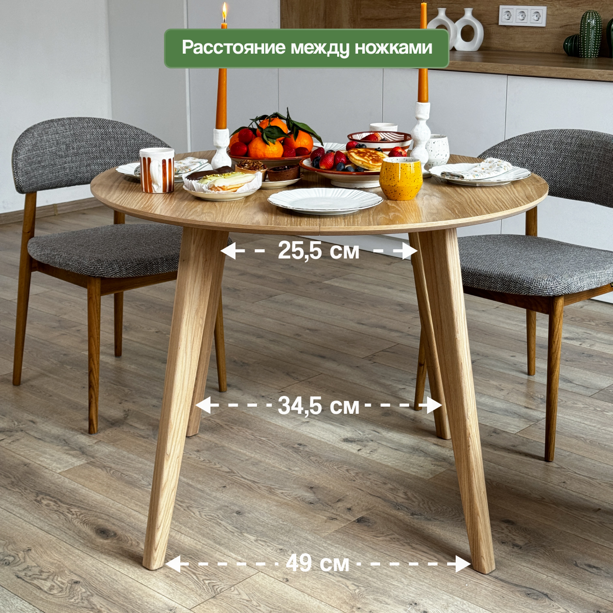 Купить Обеденный стол на кухню из натурального дуба на 3-8 персон диаметр 800 мм