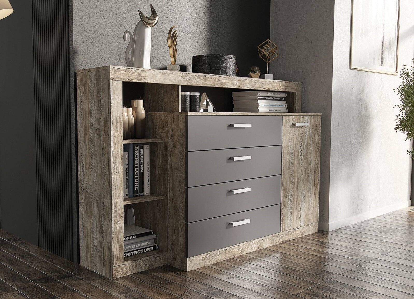 Купить Комод Ангара (Графит, дуб юкон)