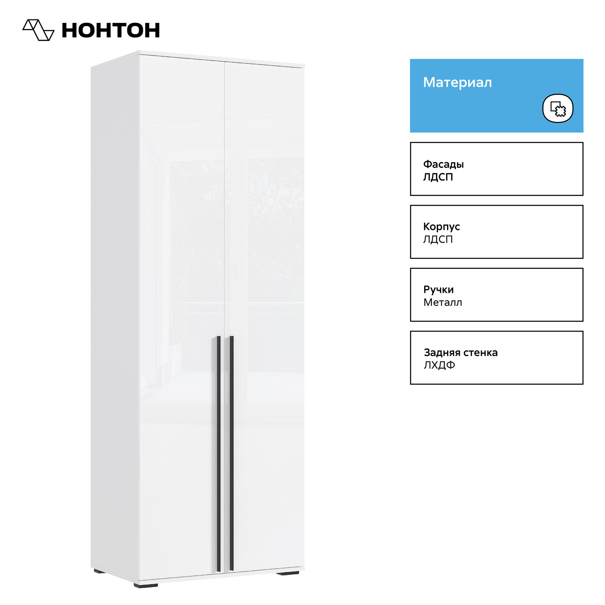 СохранитьШкаф для одежды Нонтон Норд, белый / белый глянец, 80 см интересное: