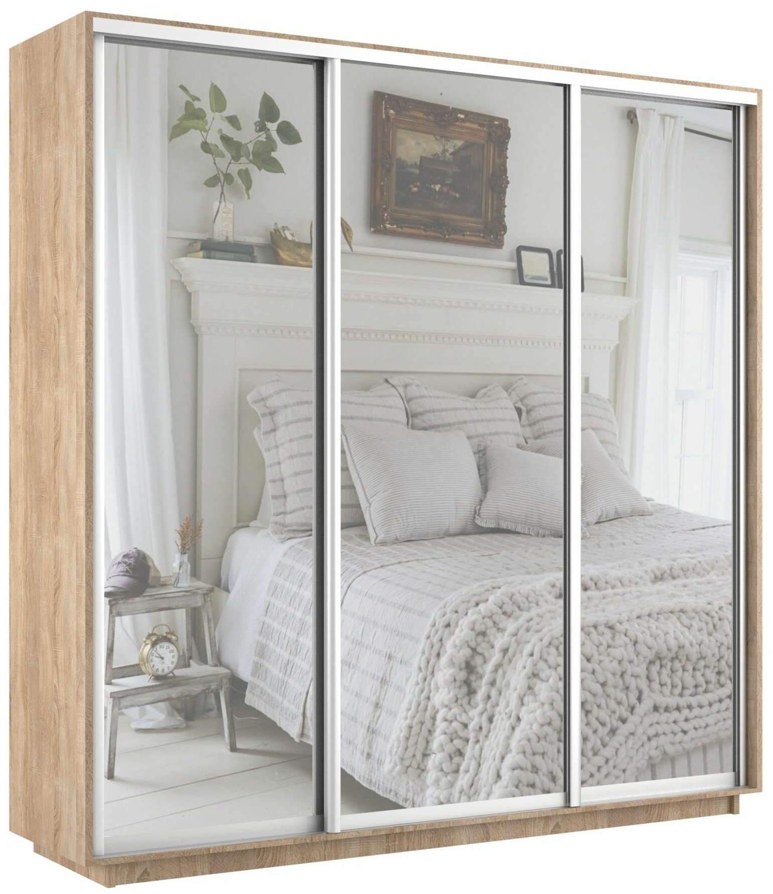 Шкаф-купе 2,4 Экспресс 3-х дверный 240х240х60 Зеркало/ЛДСП/Зеркало Сонома