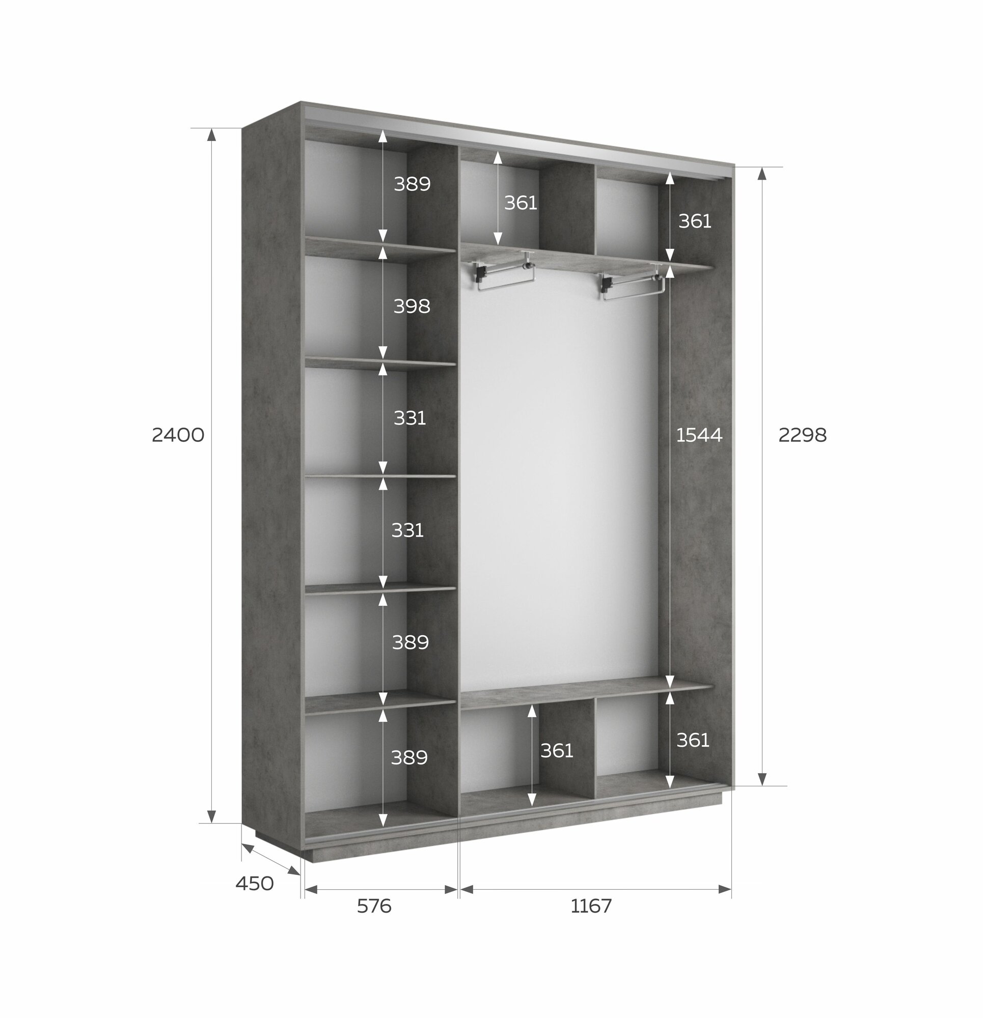 Шкаф-купе 2,4 Экспресс 3-х дверный 240х240х60 Зеркало Бетон