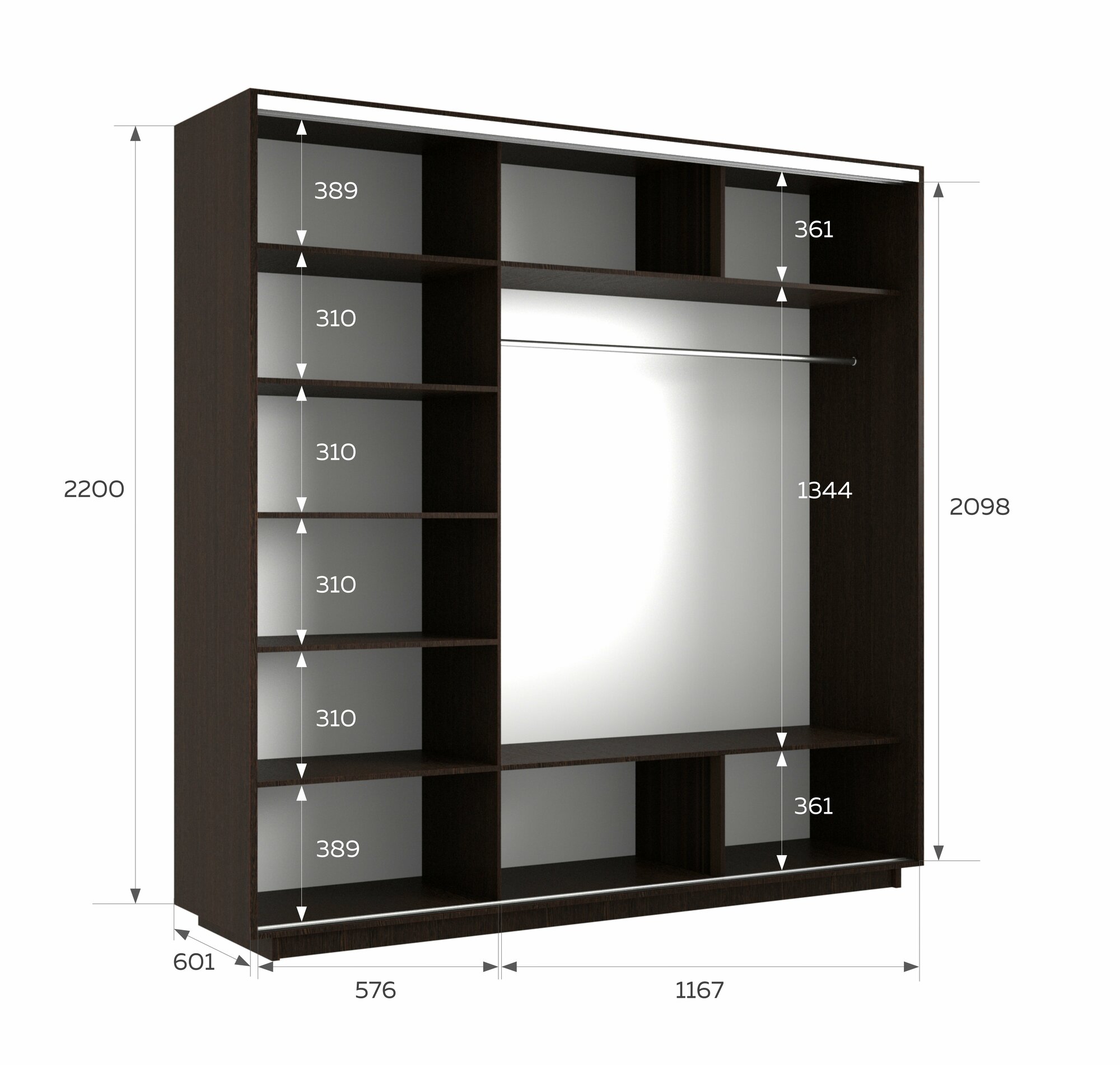 Шкаф-купе Экспресс Медиум 3-x дв 210 x 220 x 60 Зеркало Венге
