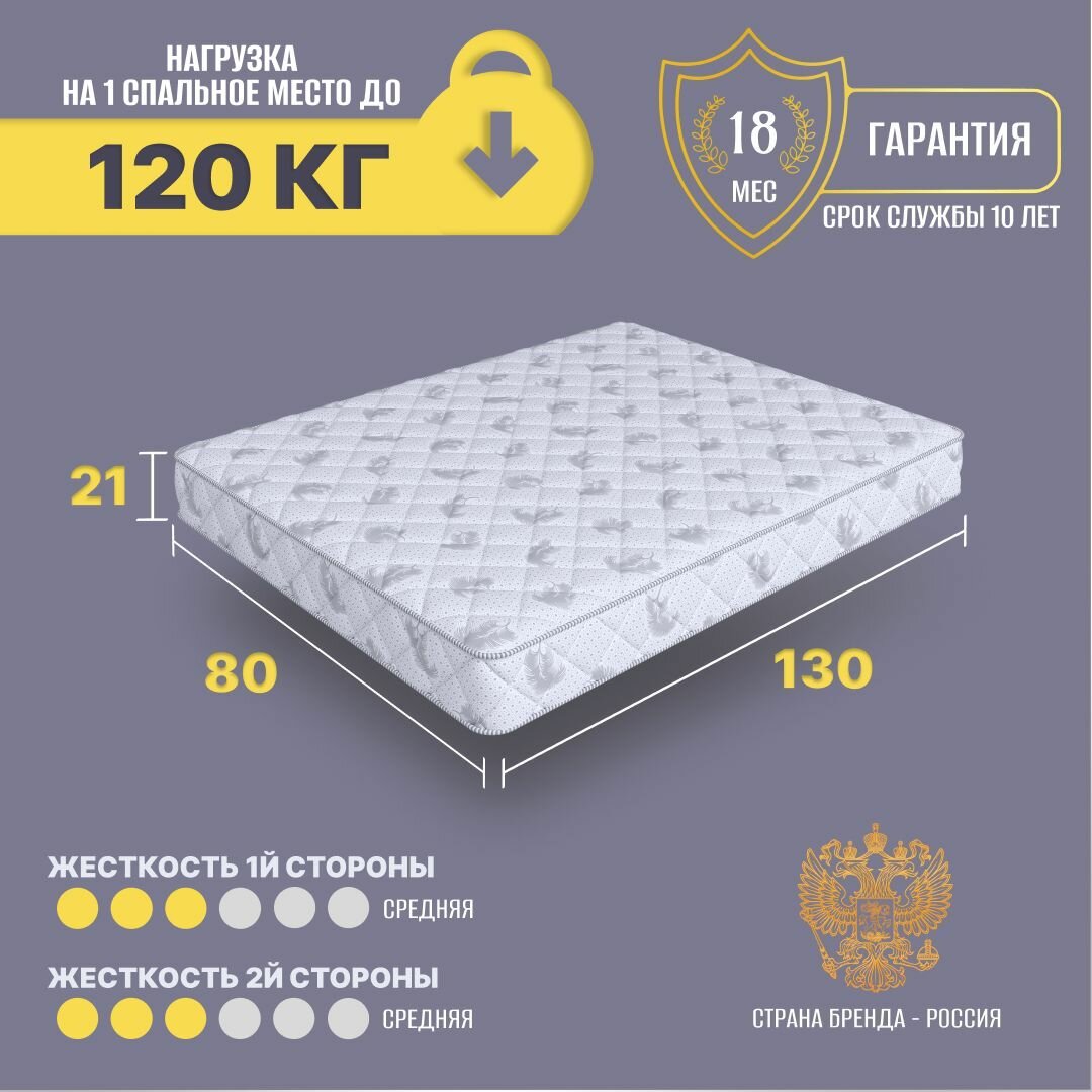 Матрас 130х140 беспружинный, анатомический, для кровати, Cosmic Meteor Joy, средне-жесткий 21 см с одинаковой жесткостью