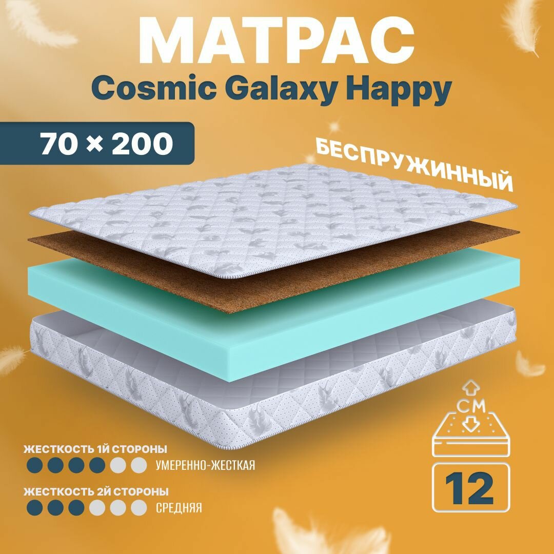 Матрас беспружинный 70х195, в кроватку, Cosmic Galaxy Happy анатомический, 12 см, односпальный, средней жесткости