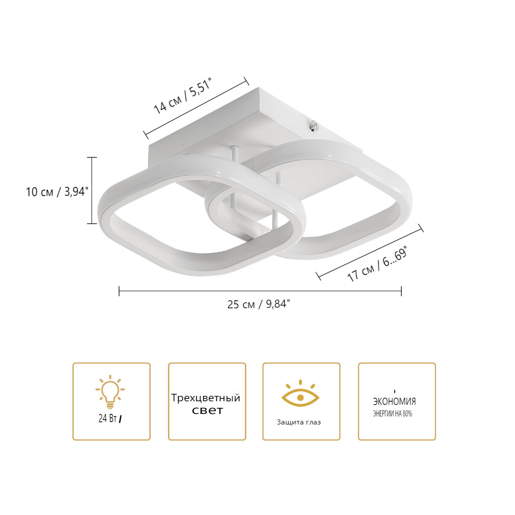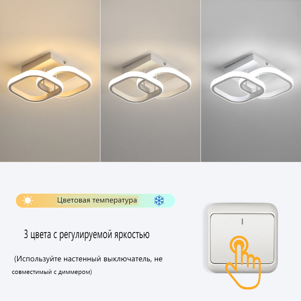 Потолочныйсветильники,Osairous,658671,Белый квадрат, трехцветный 22Вт