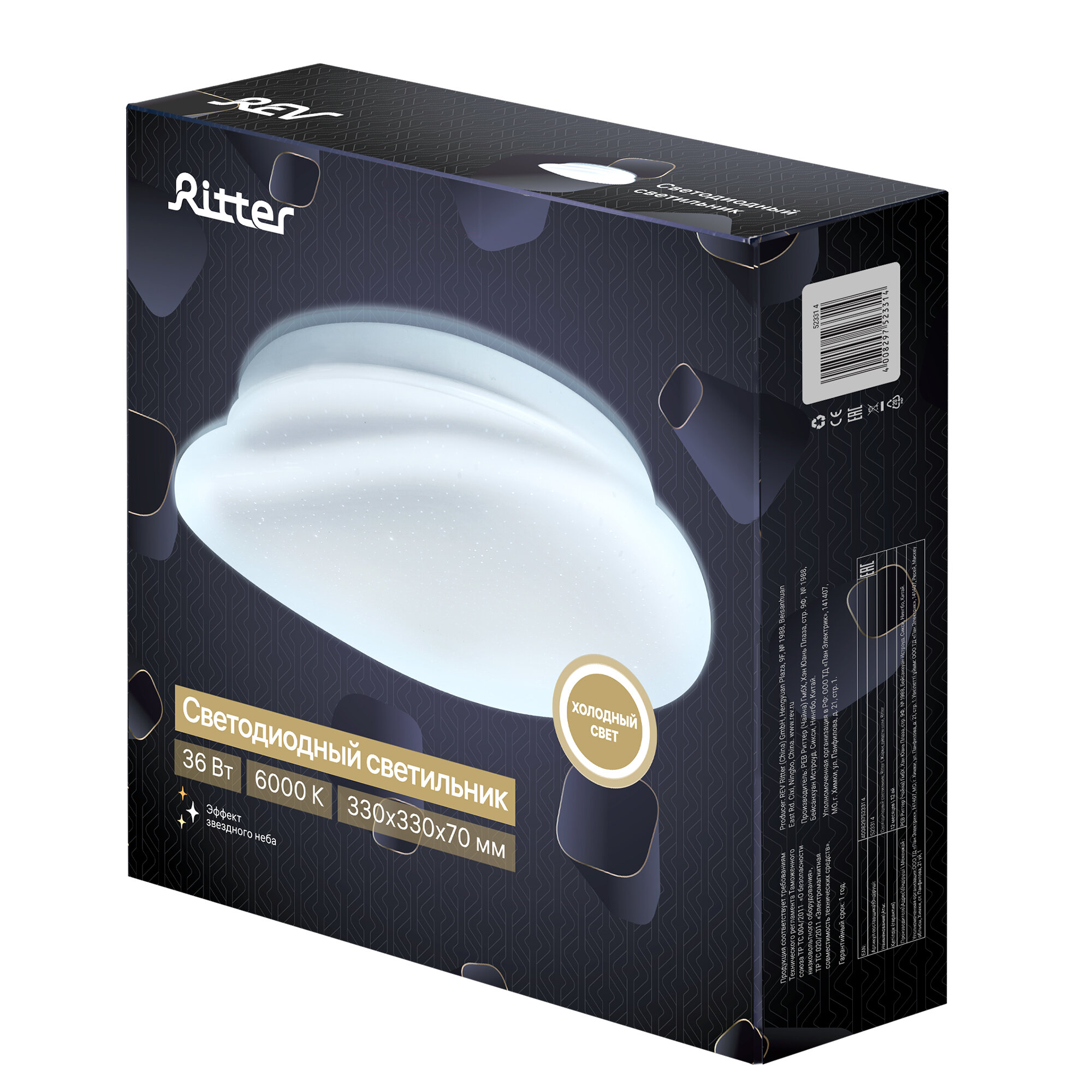 Купить Светильник светодиодный накладной Ritter Stone 6000К 36 Вт 12 кв.м белый IP20 (52331 4)