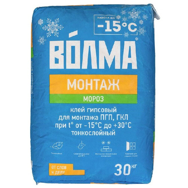 Волма Монтаж клей гипсовый монтажный для ПГП морозостойкий (30кг) / волма Монтаж Мороз клей гипсовый для монтажа ПГП тонкослойный (30кг) интересное: