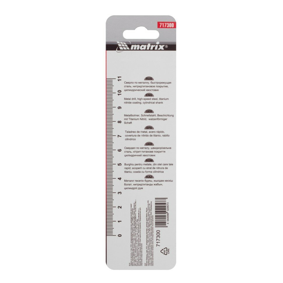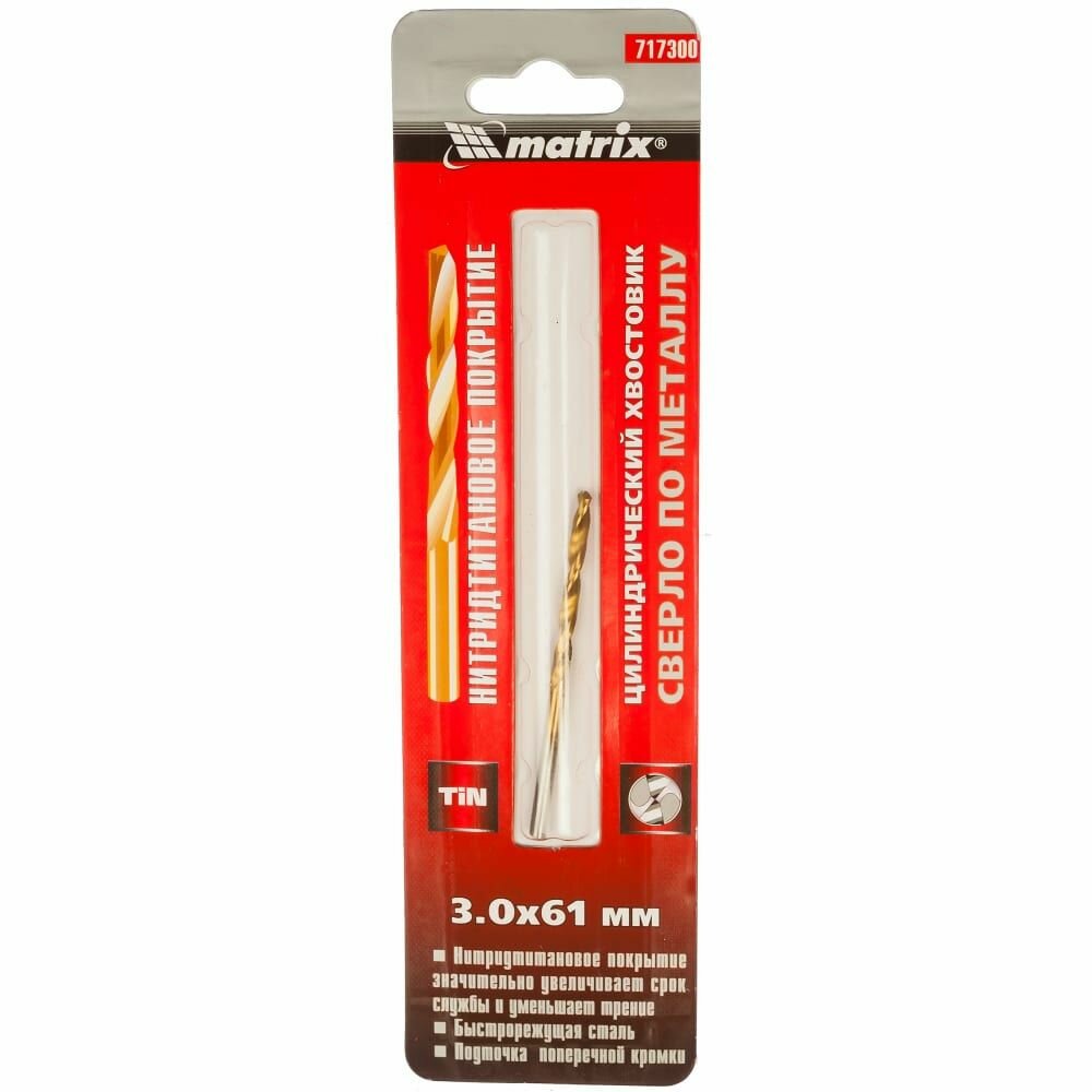 Сверло по металлу, 3 мм, HSS, нитридтитановое покрытие, цилиндрический хвостовик Matrix (арт. 717300) интересное: