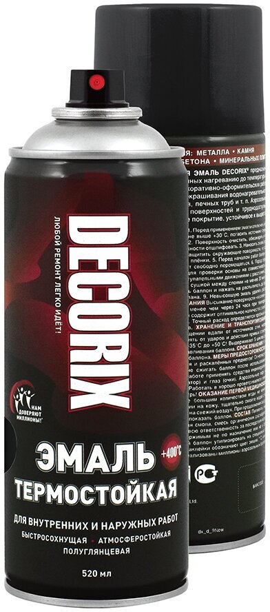 Купить DECORIX 014201DX 0142-01 DX DECORIX Эмаь термостойкая черный +400°С 520 м аэрозоь