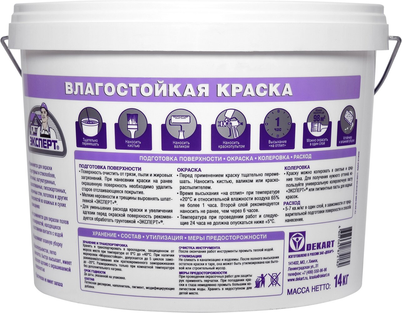 Ниже Вы можете прочитать отзывы на Эксперт Краска влагостойкая с/б внутр. 14кг, ознакомится с подробными характеристиками, посмотреть интересные обзоры и фотографии на Эксперт Краска влагостойкая с/б внутр. 14кг.