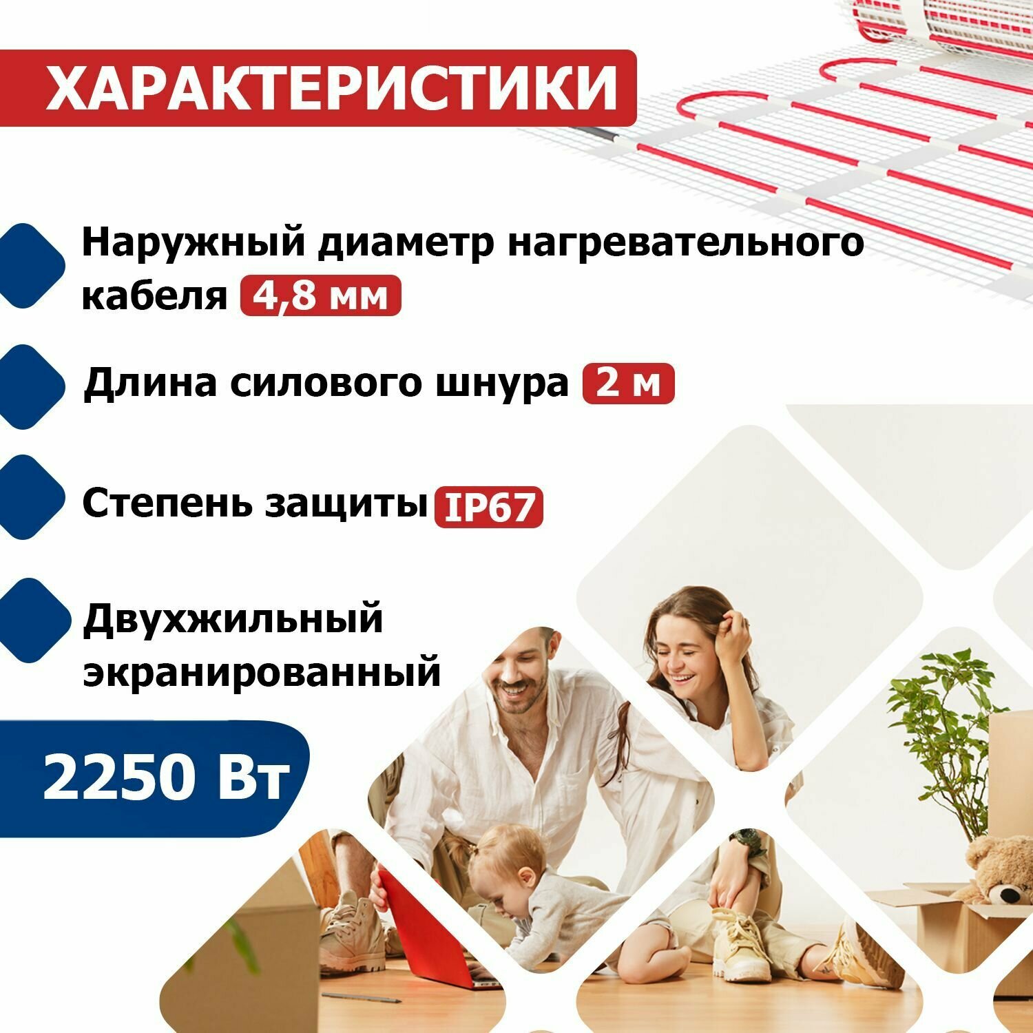 Теплый пол (нагревательный мат) (0,5х30м), S=15м2 (мощность: 2250Вт) двухжильный с экраном Classic REXANT интересное: