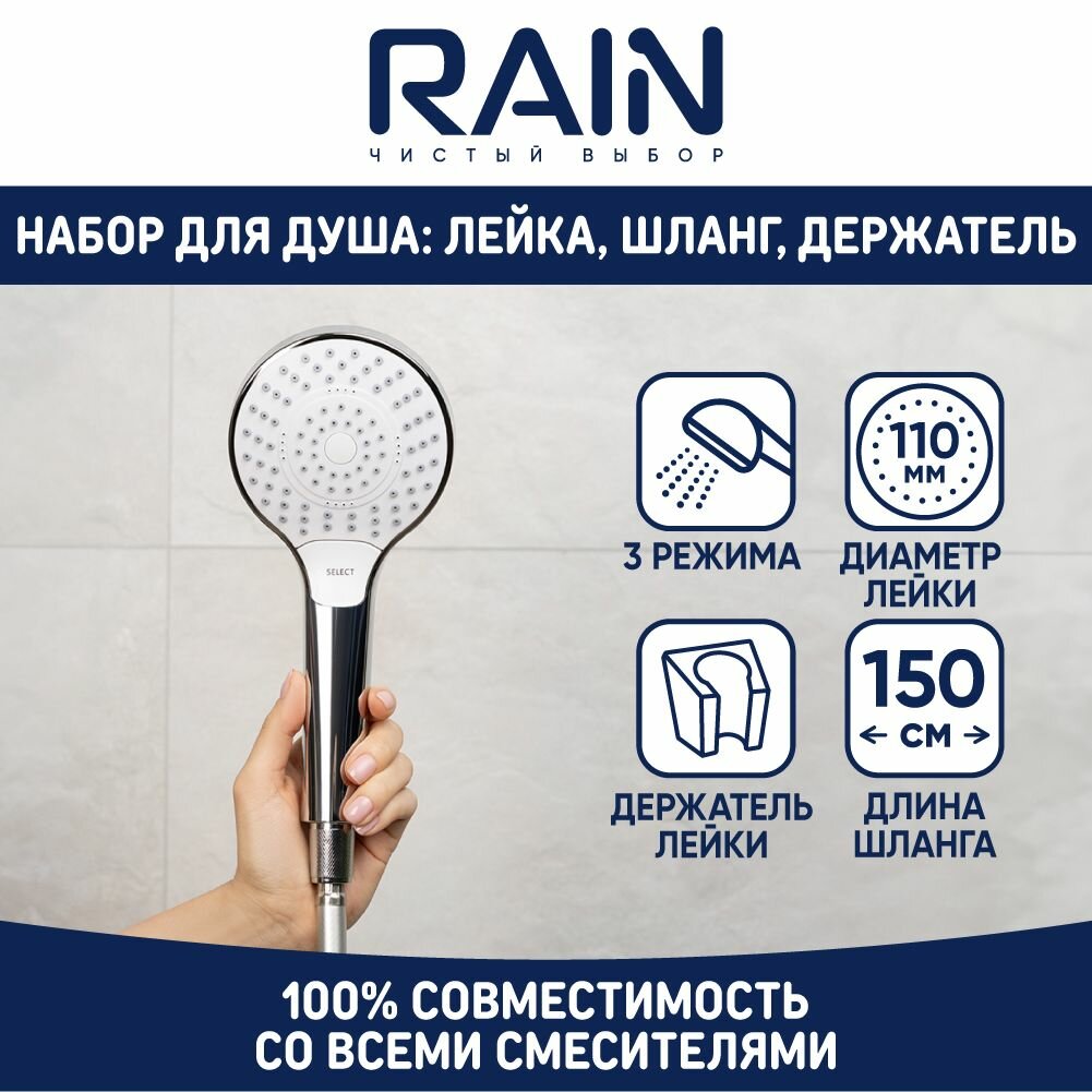 Набор для душа RAIN, лейка 110мм, 3 режима, держатель, шланг ПВХ 150см, антитвист интересное: