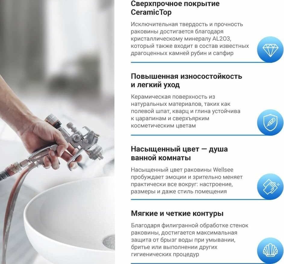 | Дополнительная информация | подвесная/мебельная раковина; декоративная заглушка на отверстие перелива (цвет хром); крепежный комплект для настенного монтажа; инструкция по монтажу и эксплуатации; гарантийный талон. |