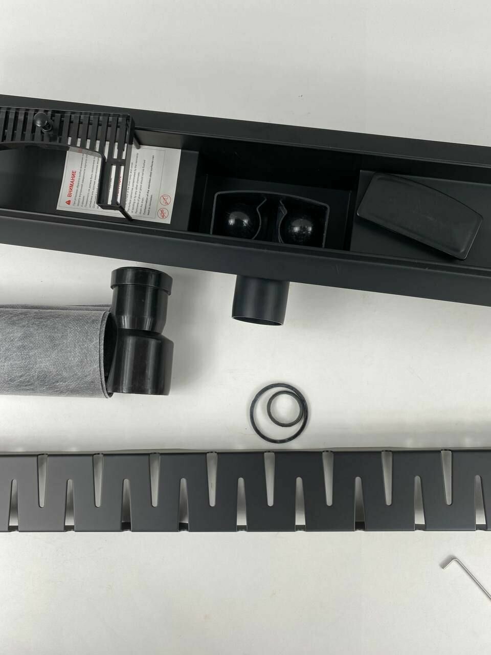 Трап для душа черный 70мм/700мм с горизонтальным выпуском с сухим затвором, BAD467002BK