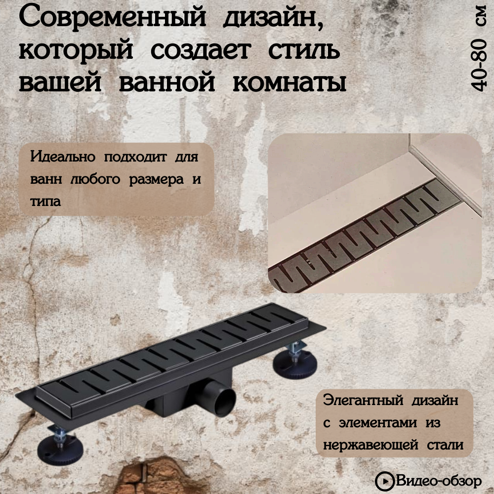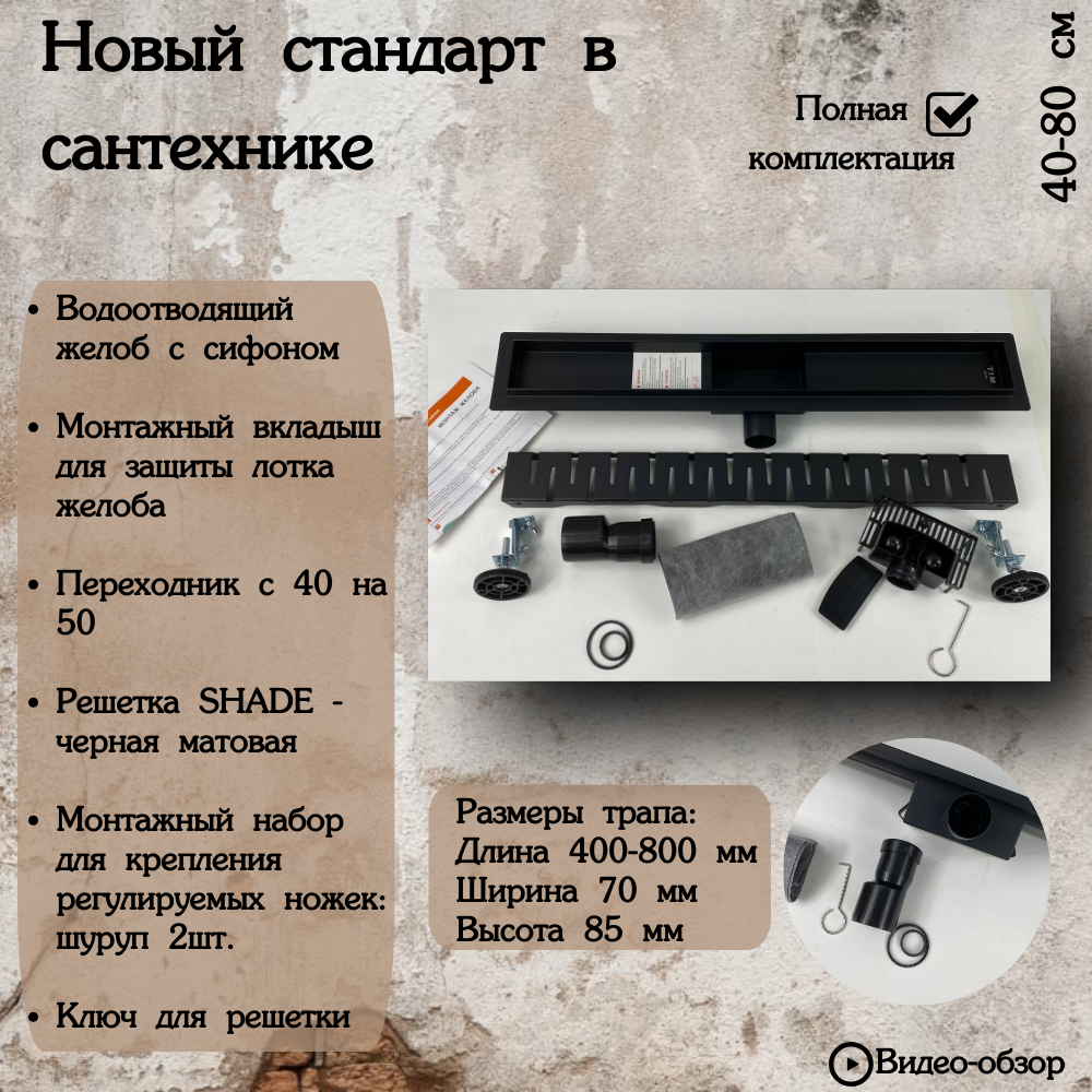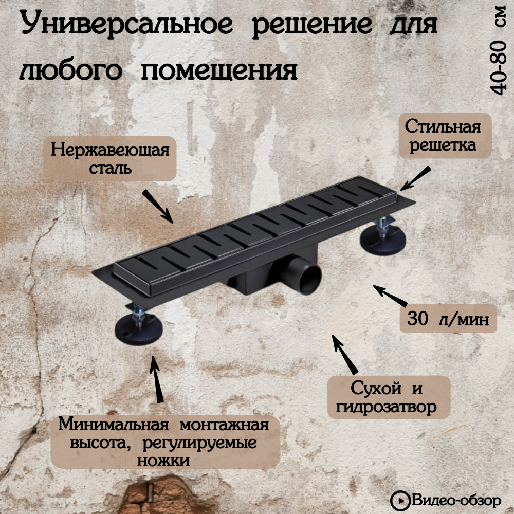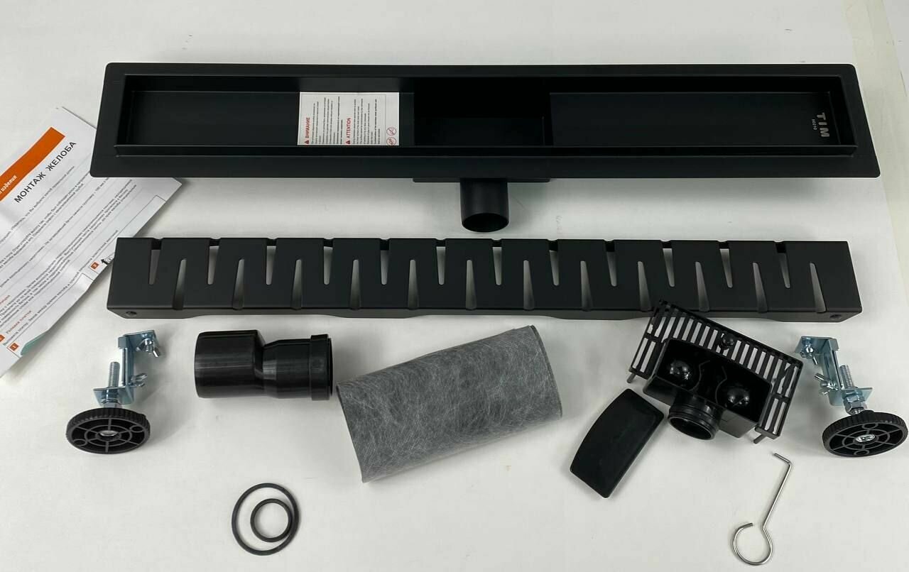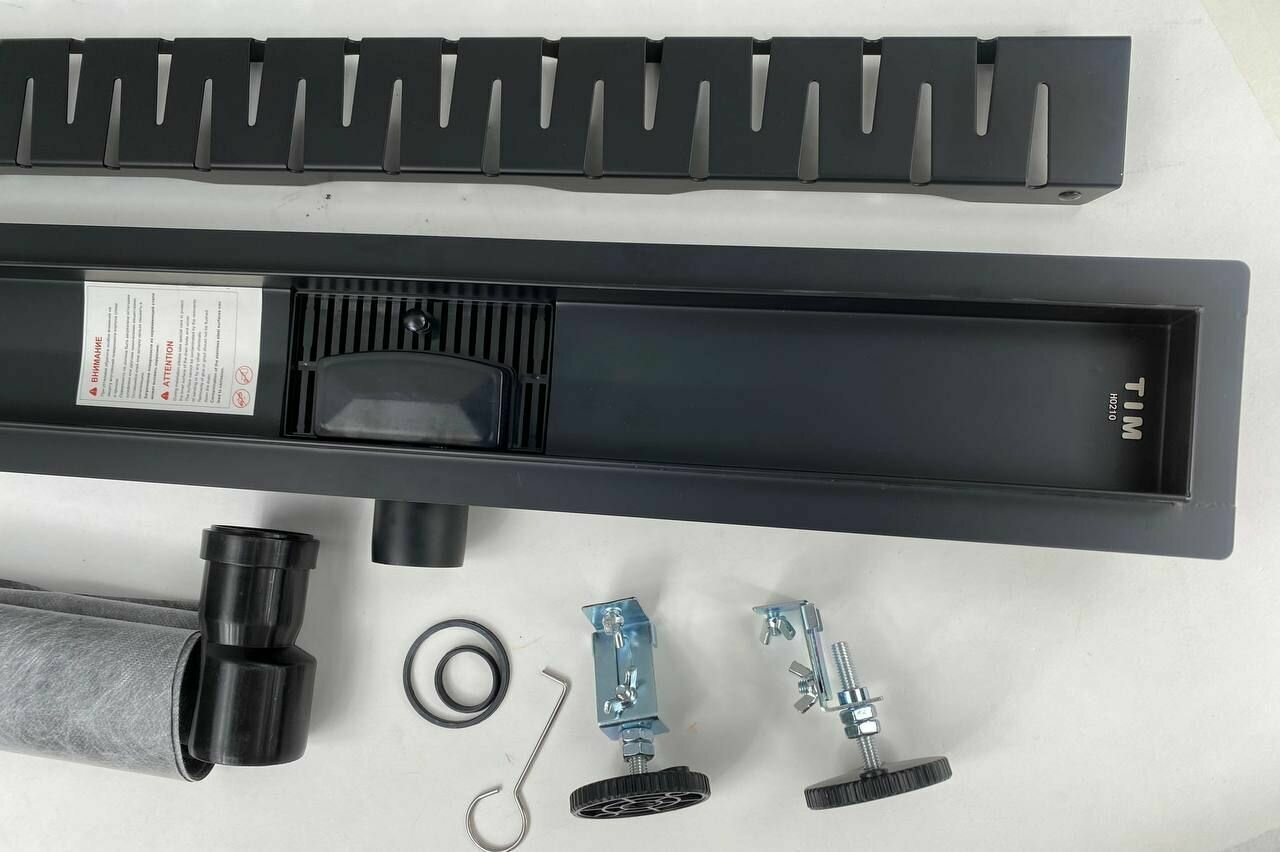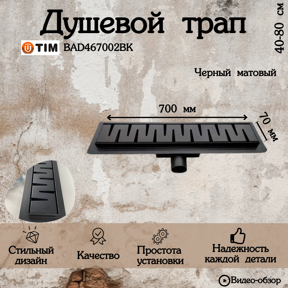 Купить Душевой трап (лоток) TIM 70 мм/700 мм с решеткой защита от запахасухой + гидрозатвор) цвет черный-матовый BAD467002BK