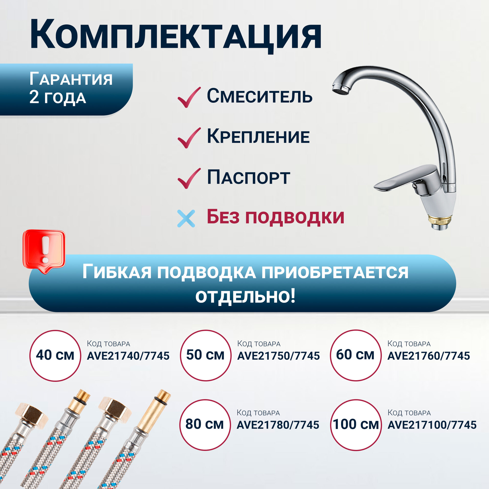 | Комплектация | смеситель (подводка в комплект не входит), крепление, паспорт |