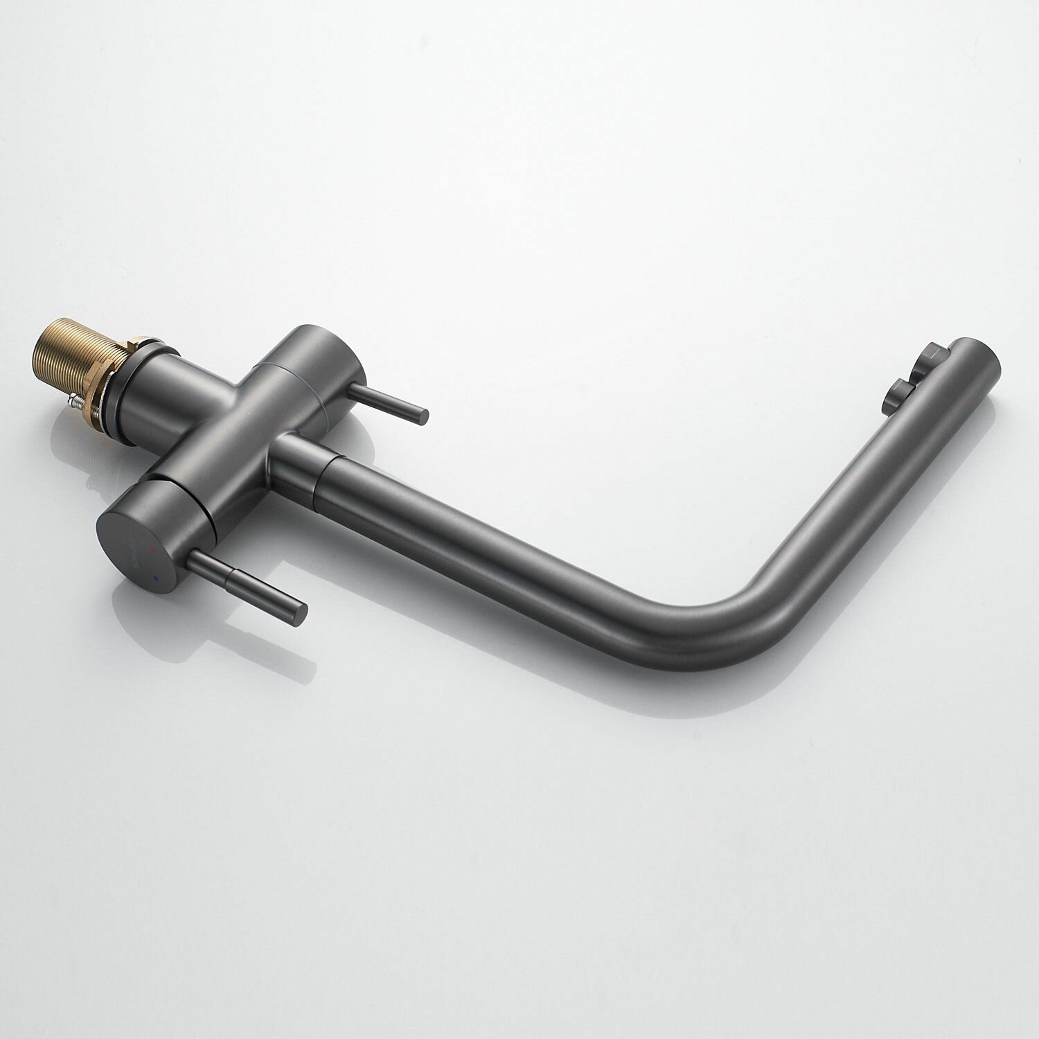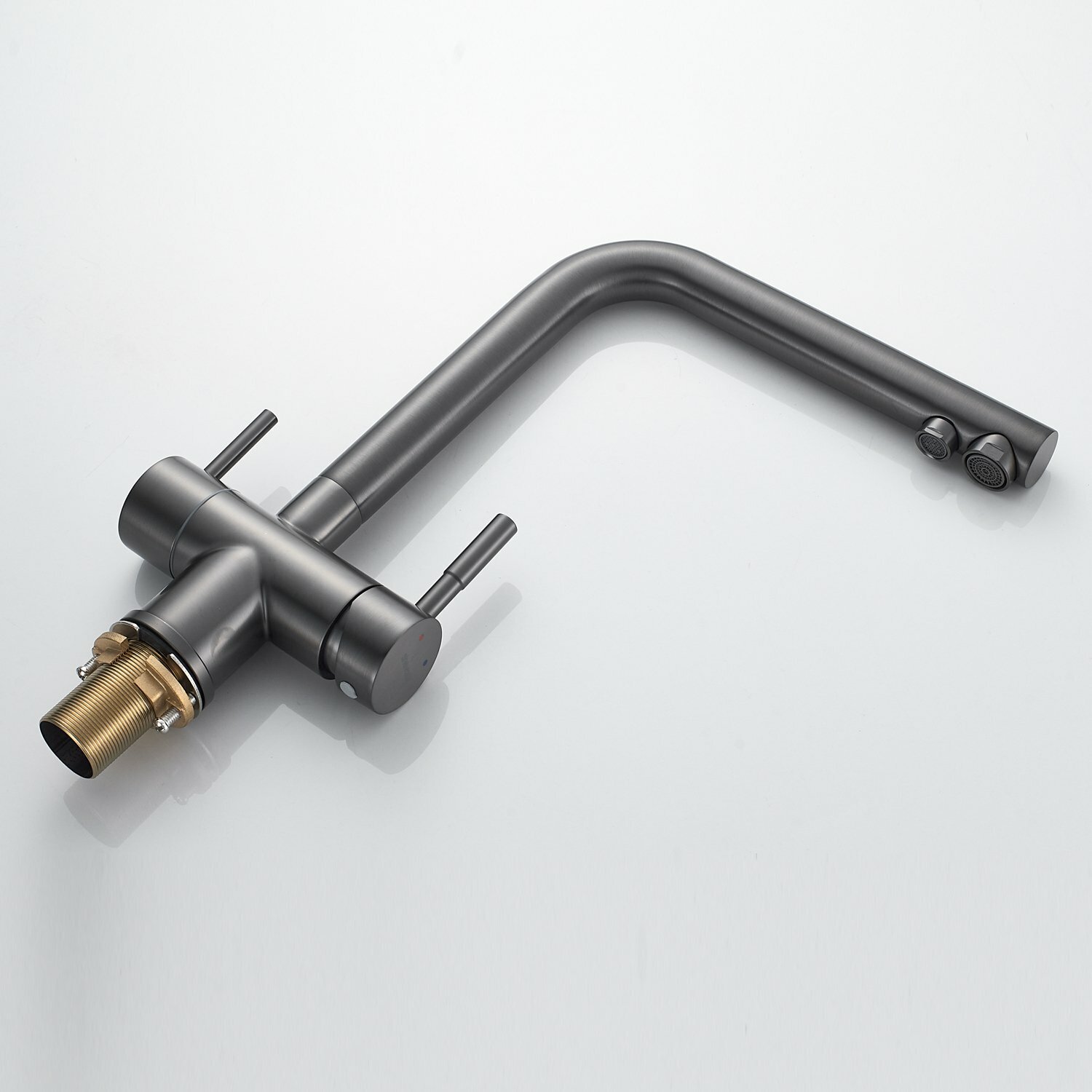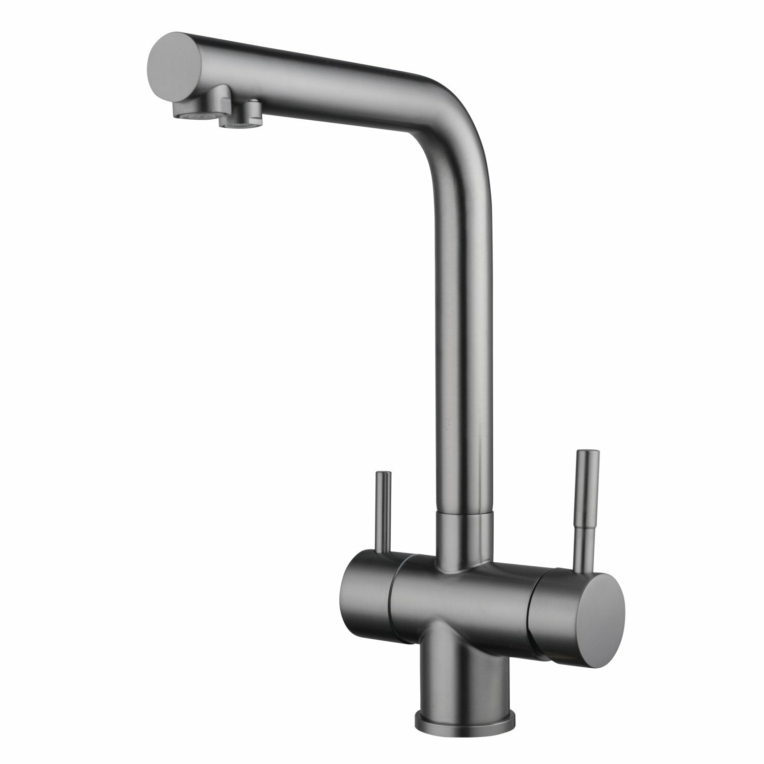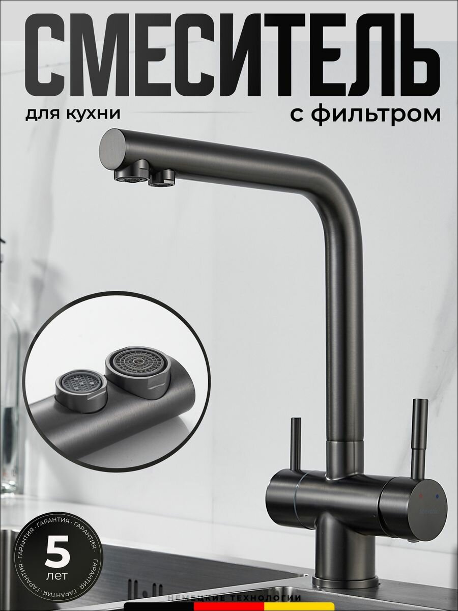Смеситель для кухни со встроенным фильтром (краном) под питьевую воду Shevanik S468T оружейная сталь