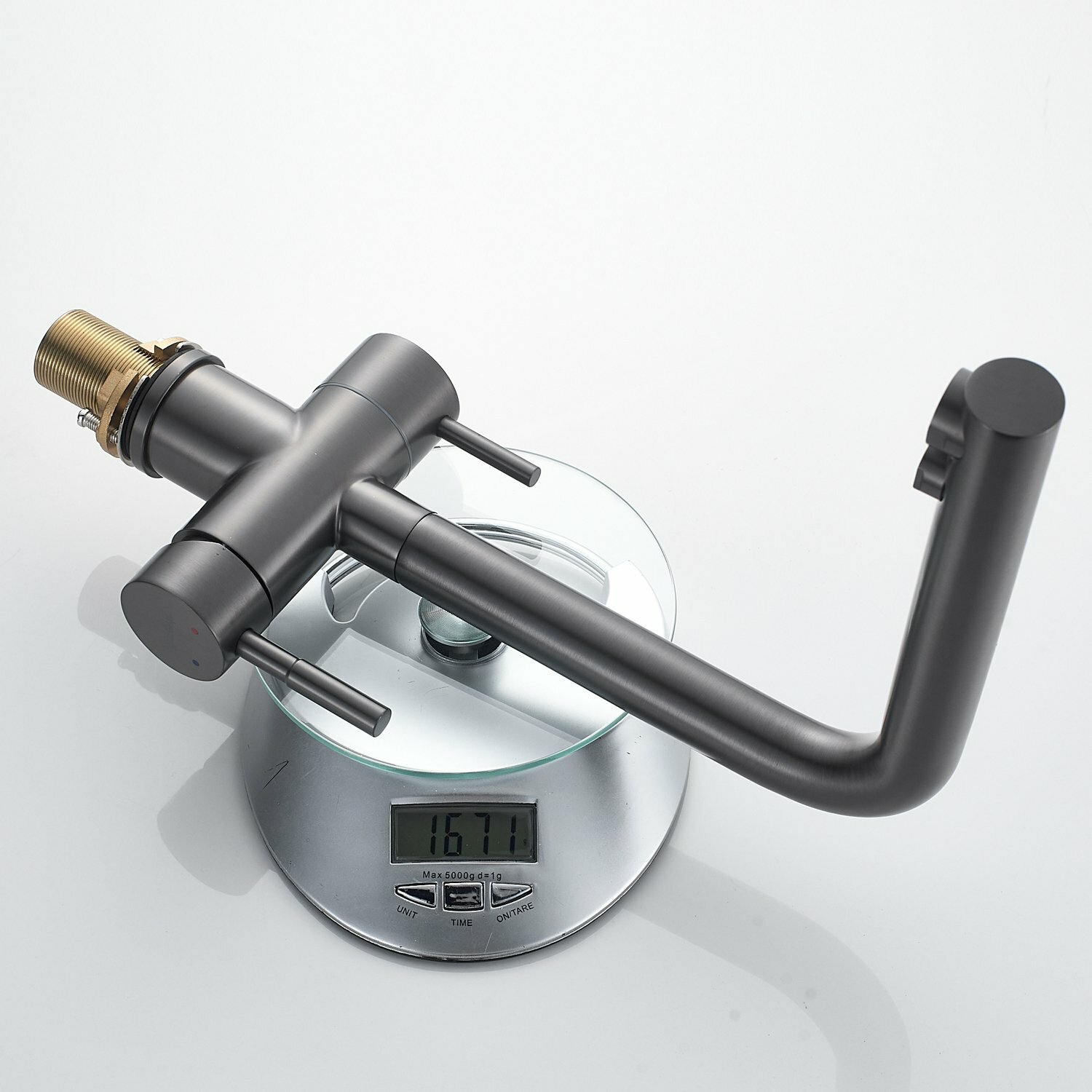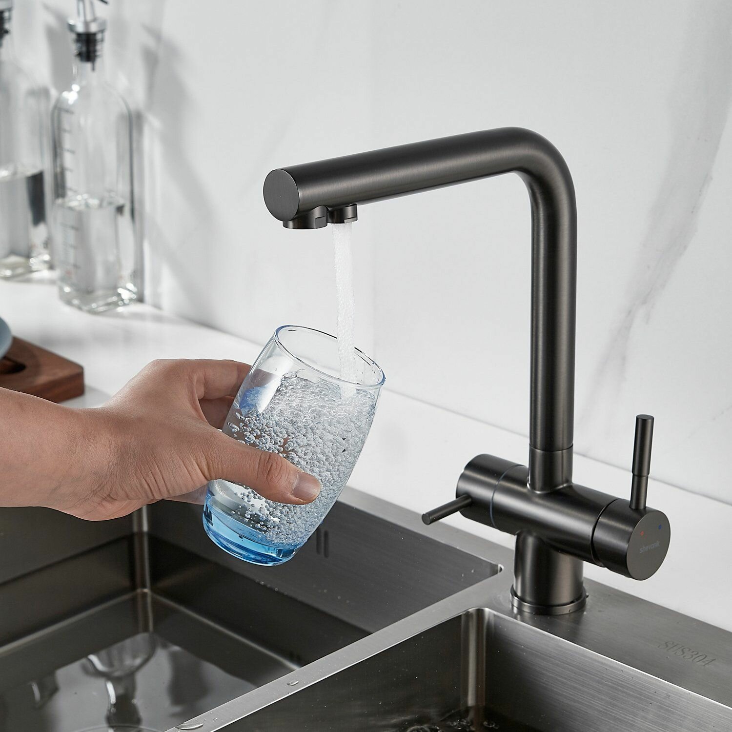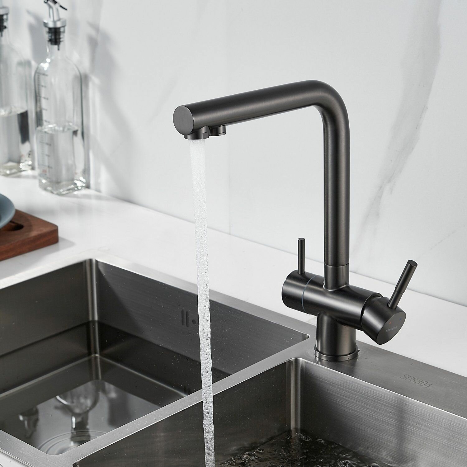 Смеситель для кухни со встроенным фильтром (краном) под питьевую воду Shevanik S468T оружейная сталь