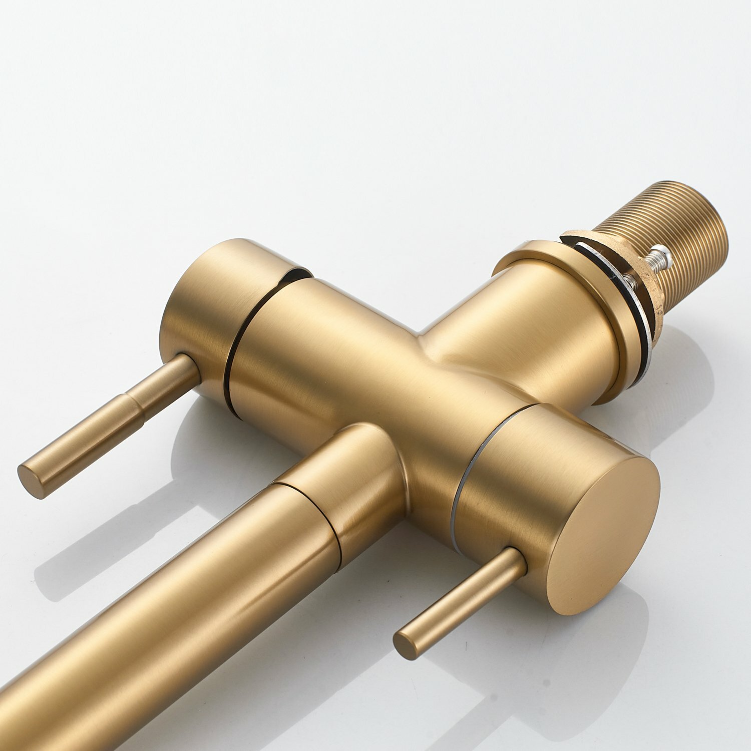 Смеситель для кухни со встроенным фильтром (краном) под питьевую воду Shevanik S468G золотой сатин