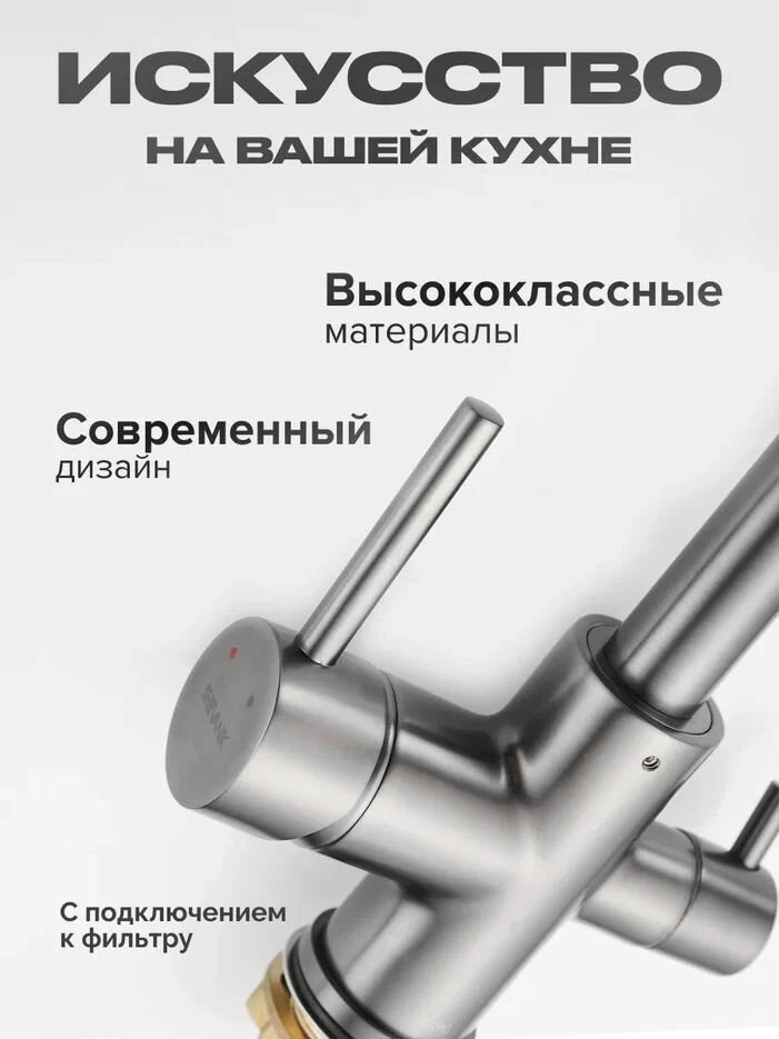 СохранитьСмеситель для кухни с подключением фильтра Shevanik S228T, оружейная сталь интересное: