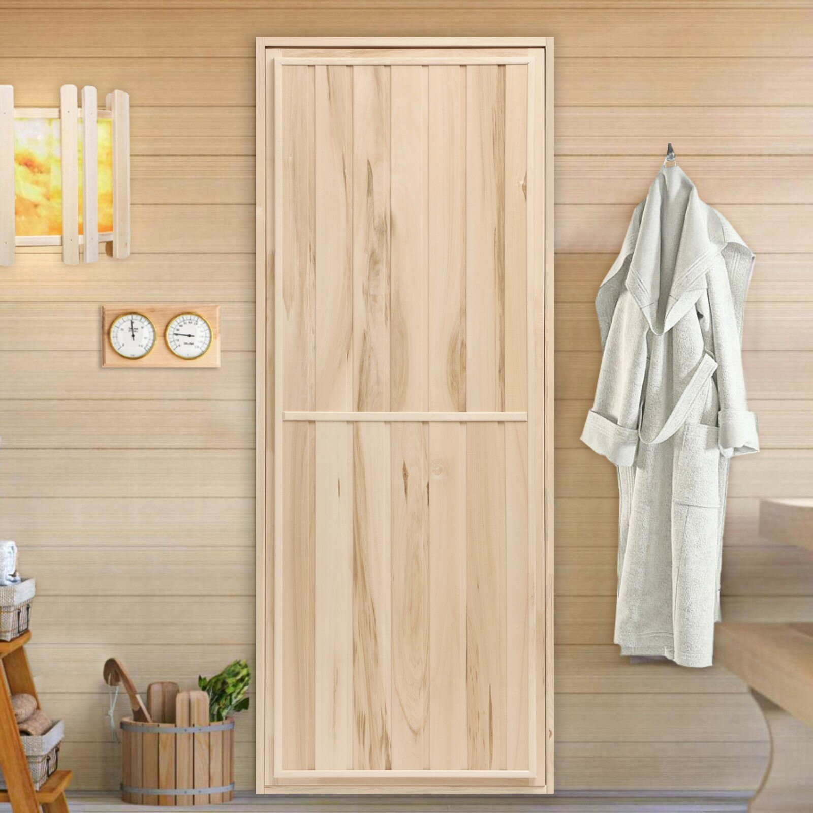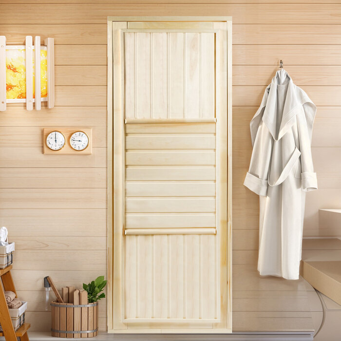 Дверной блок для бани, 190×80см, из сосны, на клиньях, массив, "Добропаровъ"