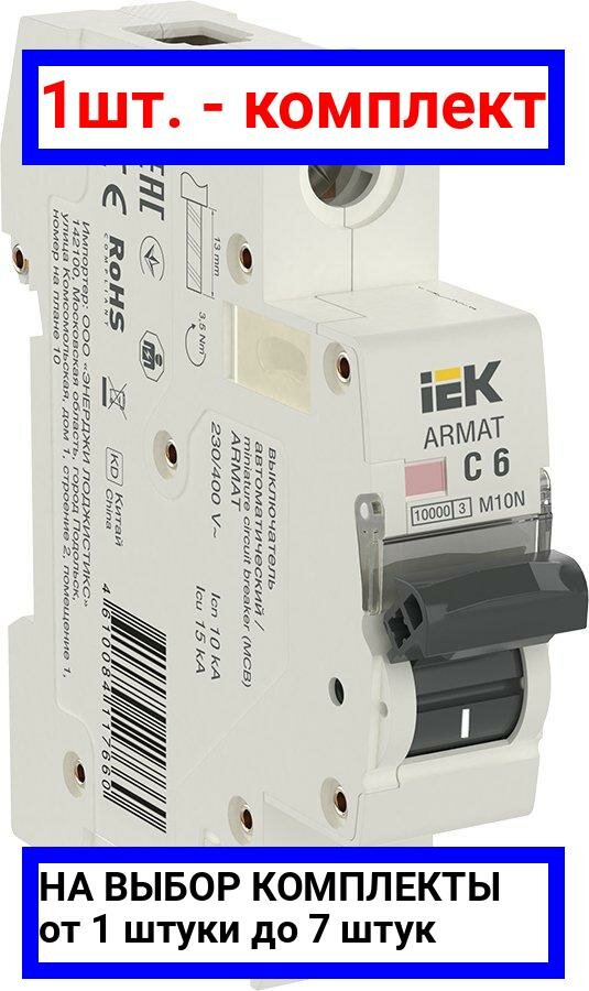 Купить IEK ARMAT Автоматический выключатель M10N 1P C 6А, IEK, арт.AR-M10N-1-C006