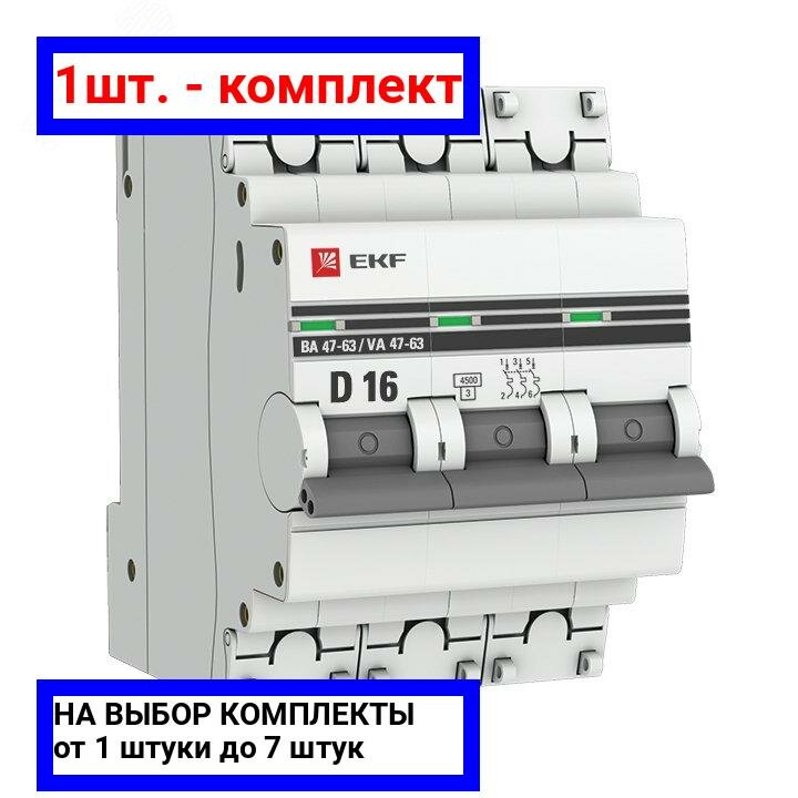Выключатель автоматический модульный 3п D 16А 4.5кА ВА 47-63 PROxima EKF mcb4763-3-16D-pro