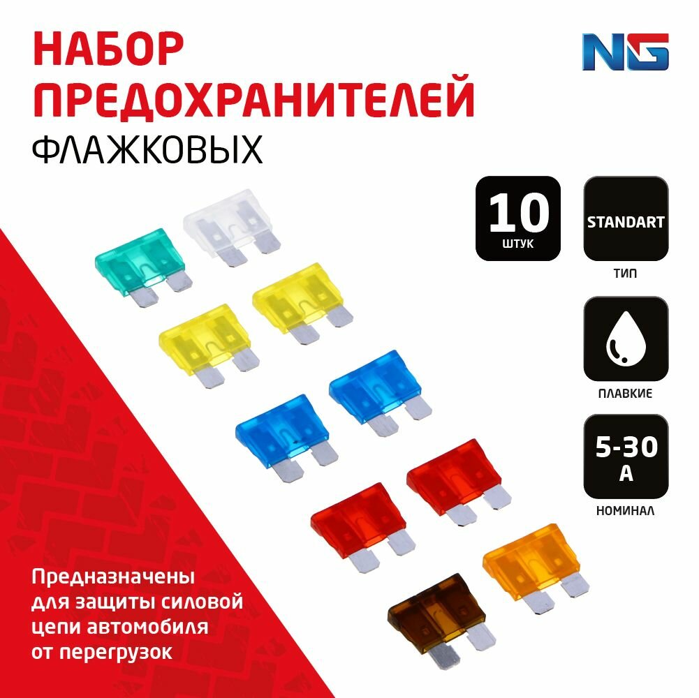 NG Предохранители флажковые STANDART 5-30 А, набор 10 шт