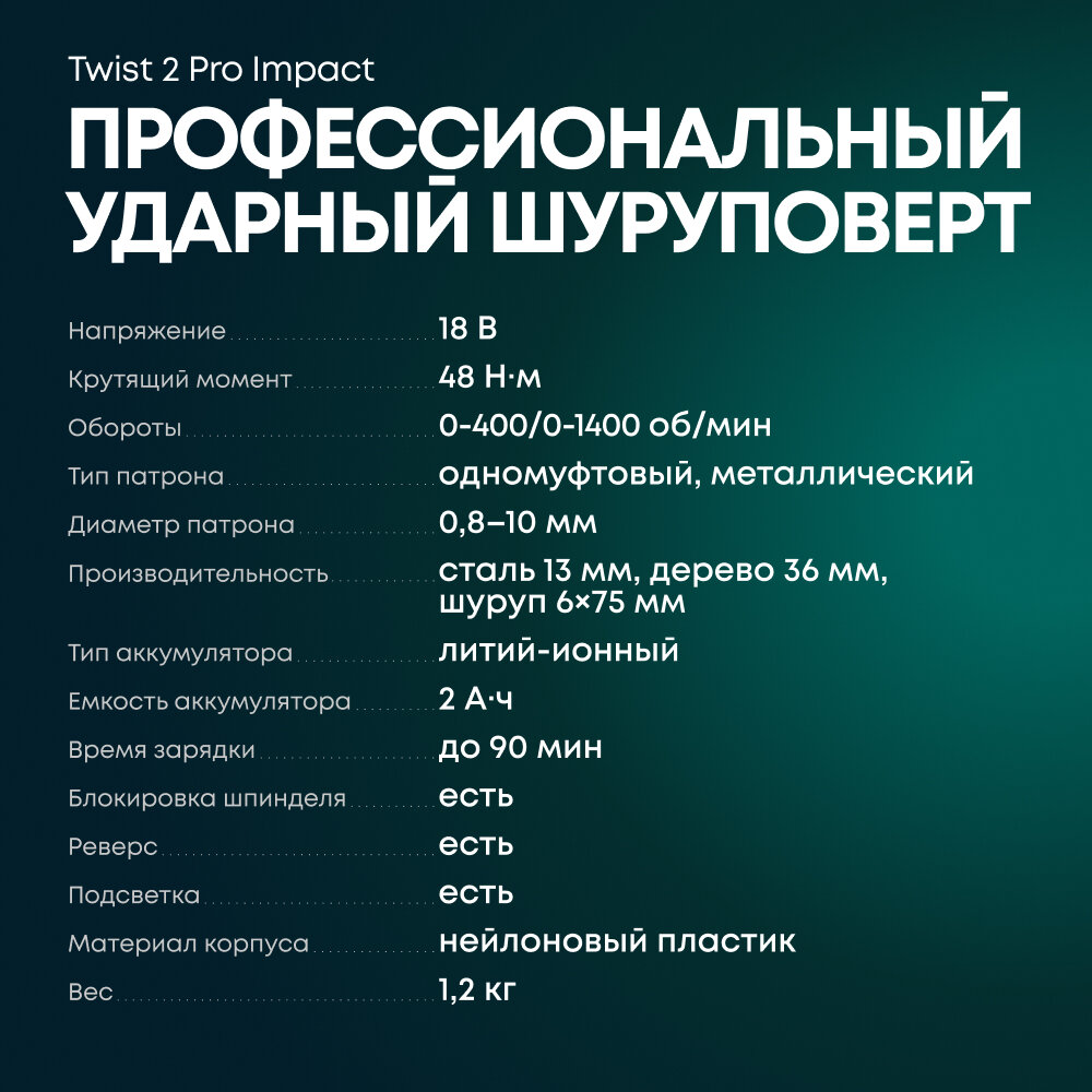 Ударная дрель-шуруповерт Rokodil Twist 2 Pro Impact (2 АКБ) интересное: