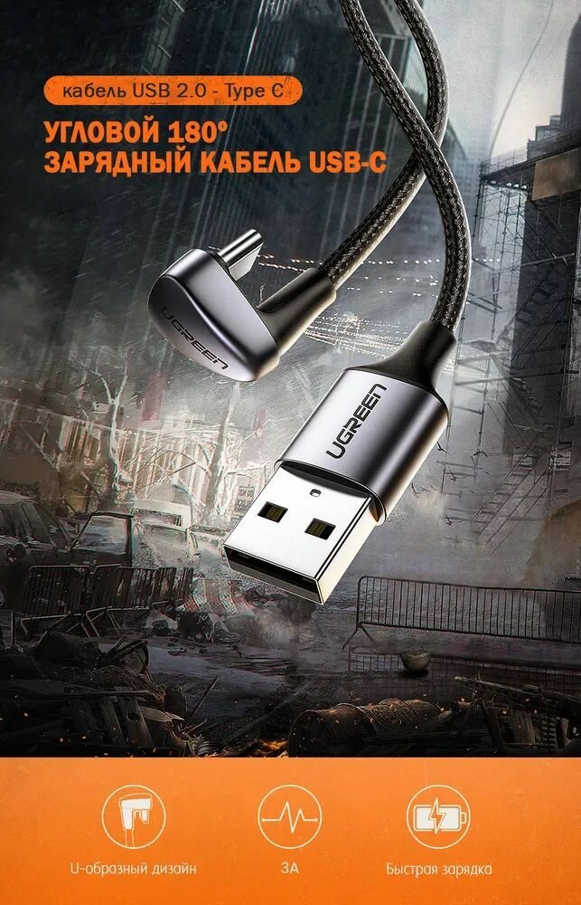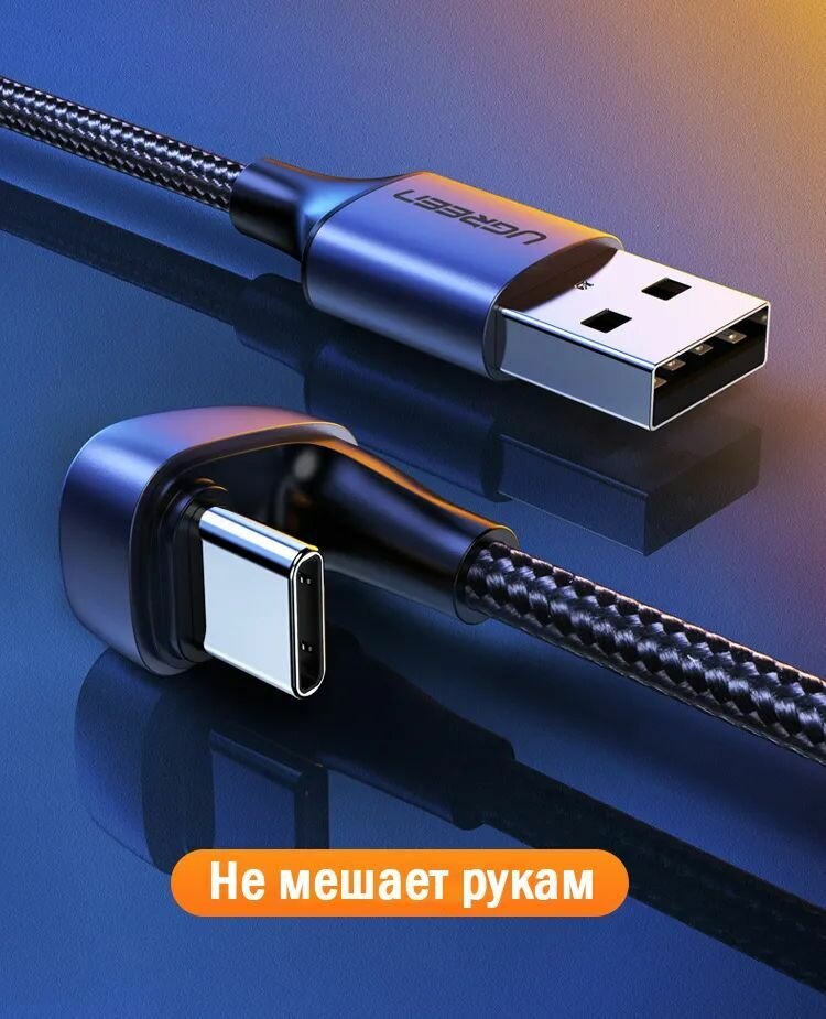 Кабель угловой UGREEN US311 (70315) USB2.0-A to Angled USB-C Cable Aluminum Case with Braided. Длина: 2 м. Цвет: черный интересное: