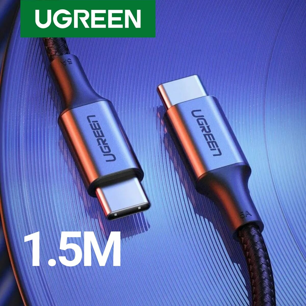 Кабель Ugreen USB C PD 100 Вт, в оплетке, цвет черный, 1 м (70427)