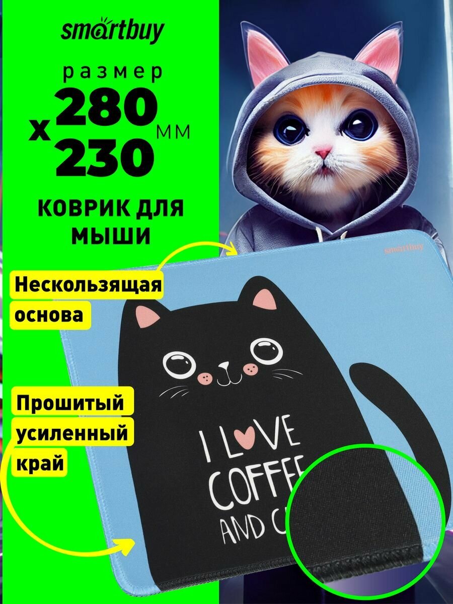 2 шт. Коврик для мыши Smartbuy Cat-1, 360*270*3мм, ткань+резиновая основа