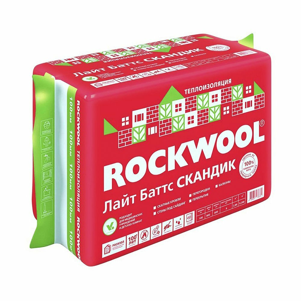 Каменная вата Rockwool Лайт Баттс Скандик, 1200 x 600 x 100 мм, 6 плит интересное: