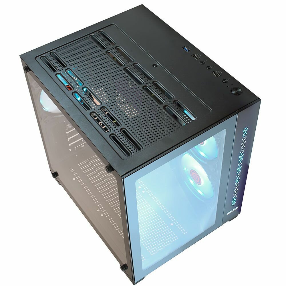 Корпус Ginzzu V350 mATX кубик, закаленное стекло, RGB подсветка, система охлаждения