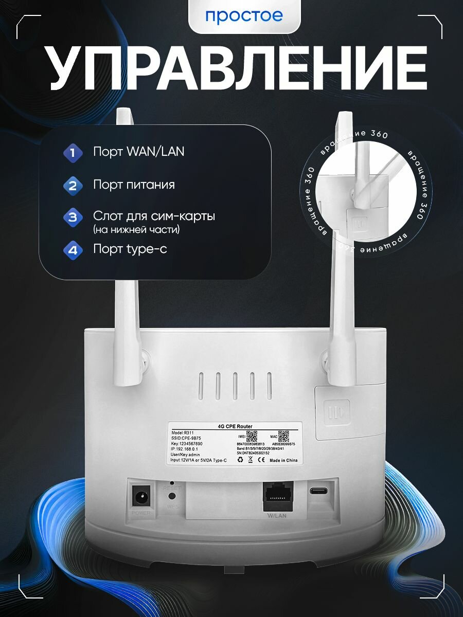 Роутер wifi с сим картой 4G (LTE)/5G R311 интересное: