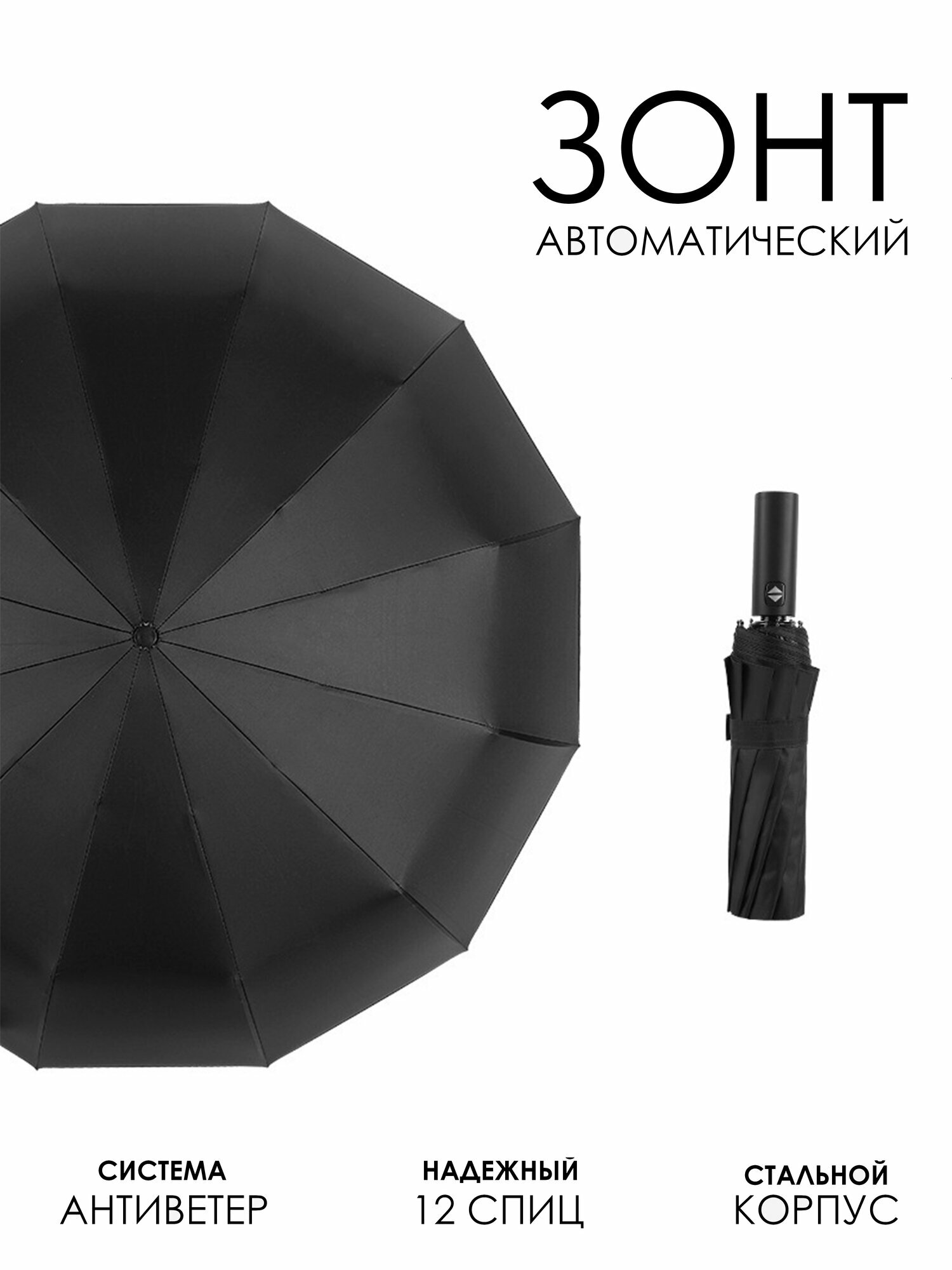 Зонт 12-ти спицевый автоматический. (черный) интересное: