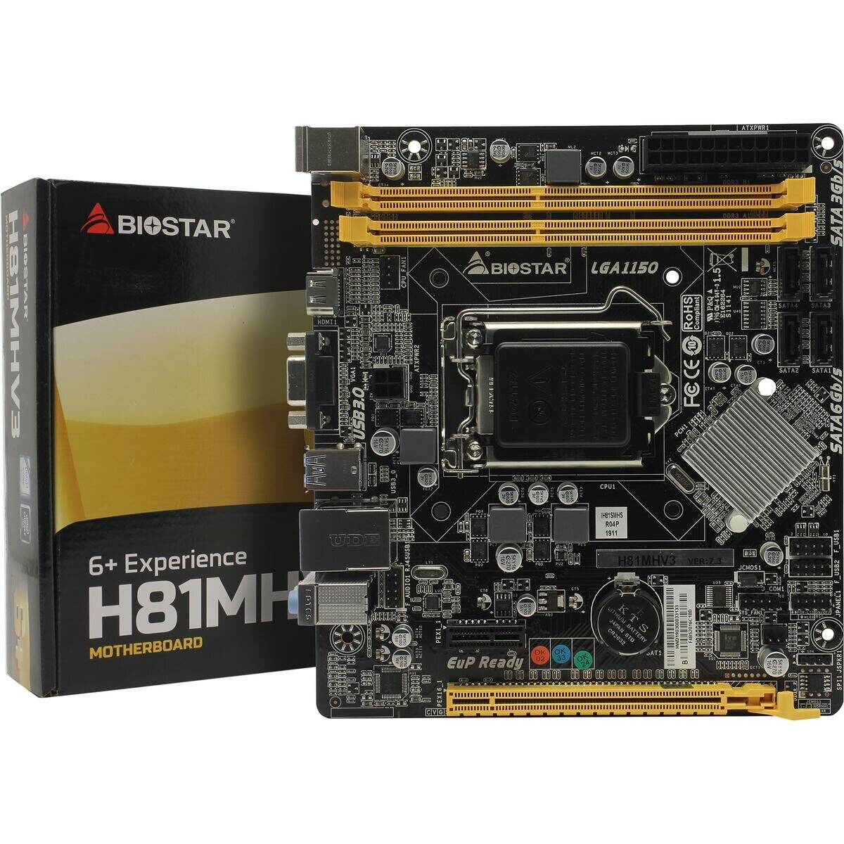 Материнская плата mATX Biostar H81MHV3 (LGA1150,H81,2*DDR3(1600),PCI-Ex16,GLan,2*SATA 3G/2*SATA 6G,5.1CH,2*USB 3.0,D-Sub/HDMI) RTL