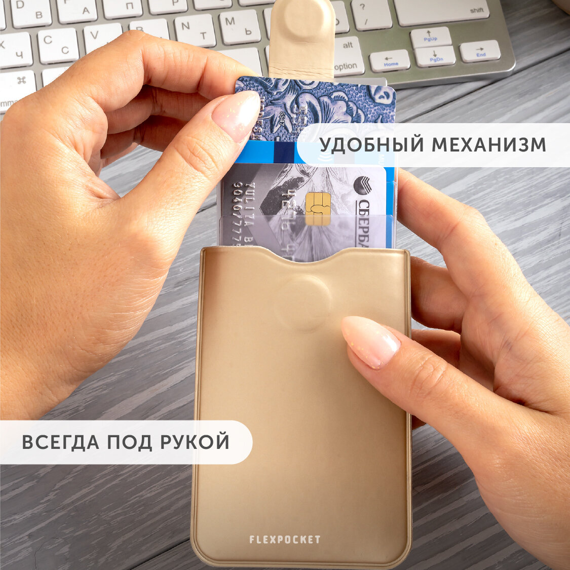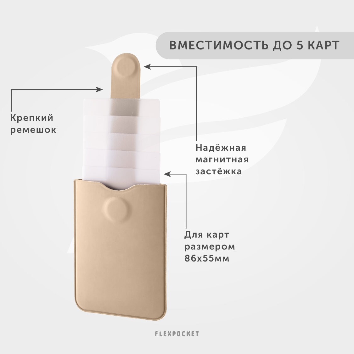Картхолдер на 5 карт, чехол для кредитных карт Flexpocket, кредитница, цвет бежевый интересное: