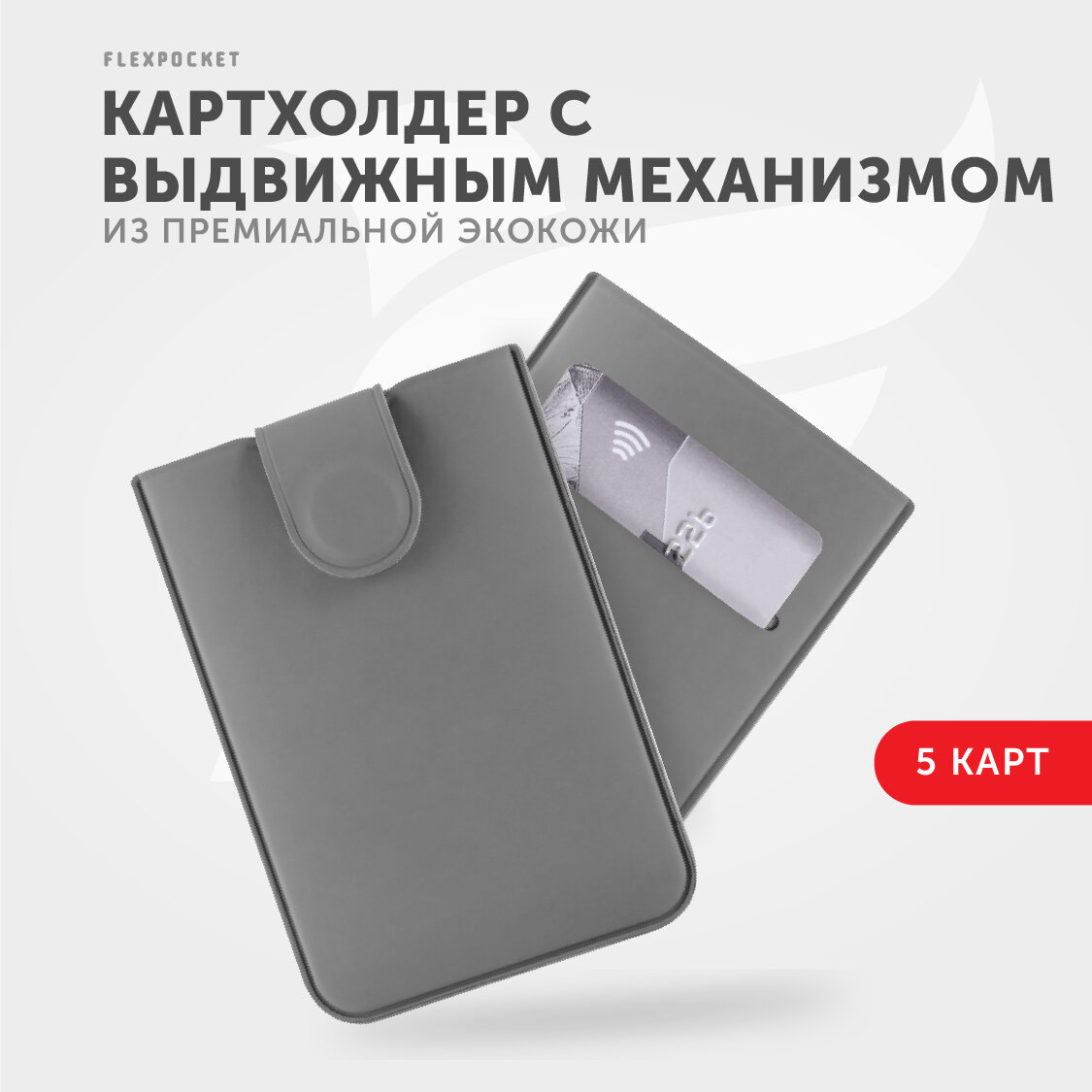 Картхолдер на 5 карт, чехол для кредитных карт Flexpocket, кредитница, цвет светло-серый интересное: