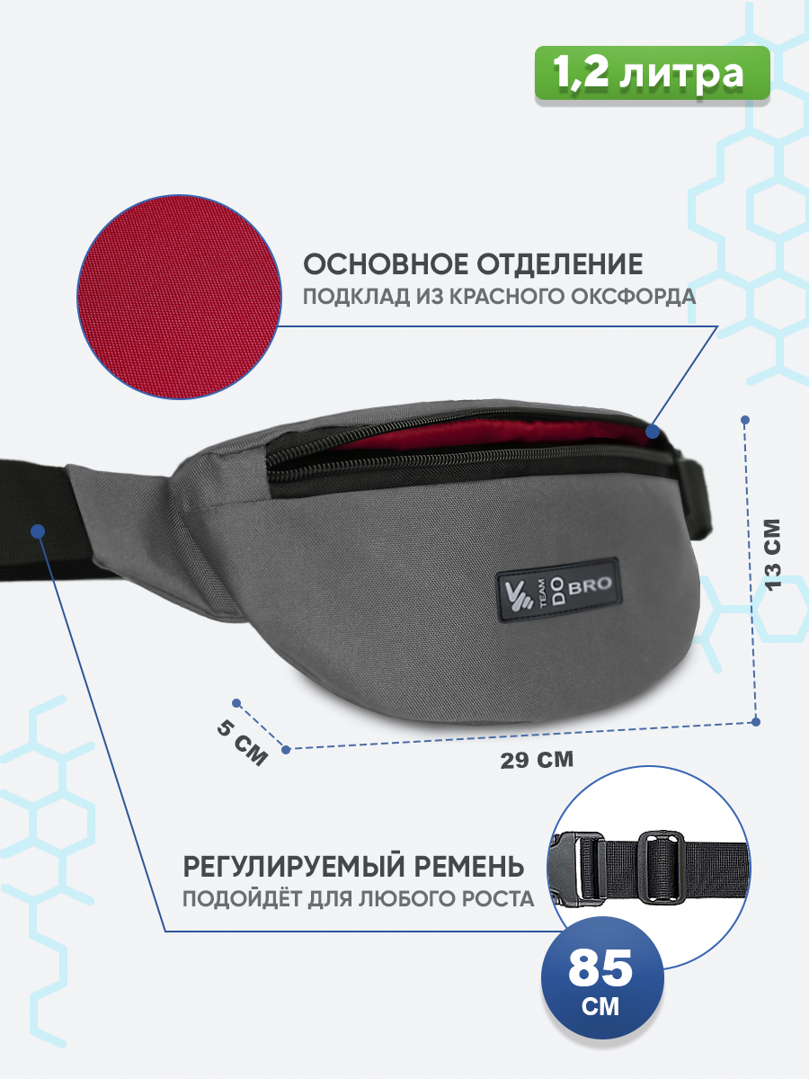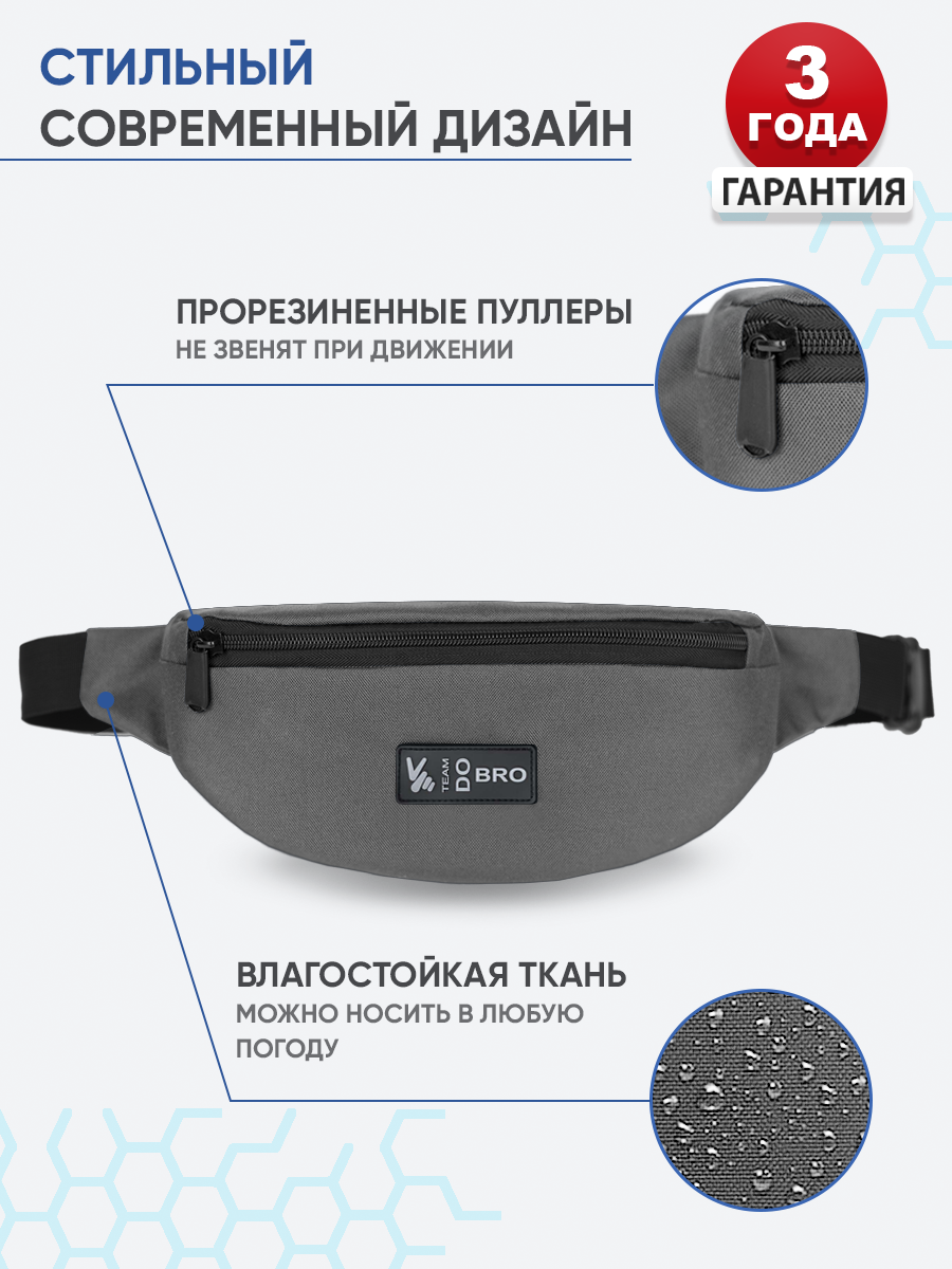 Поясная сумка мужская / Сумка на пояс мужская / DoBro Turbo серый интересное: