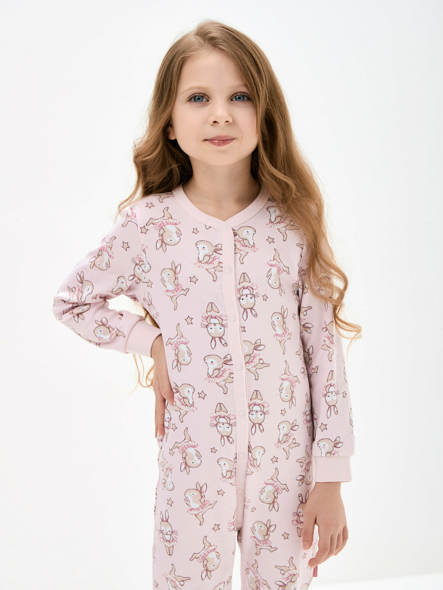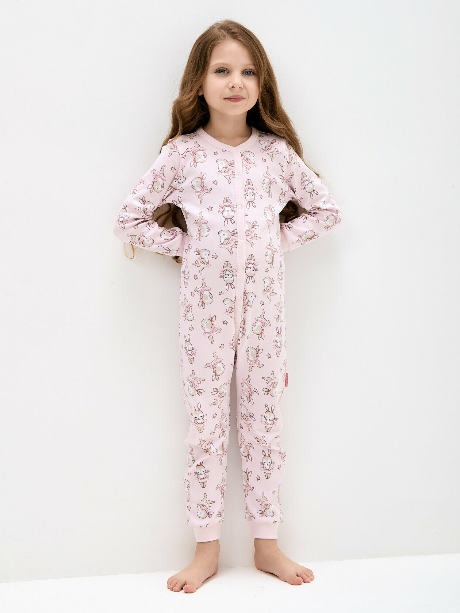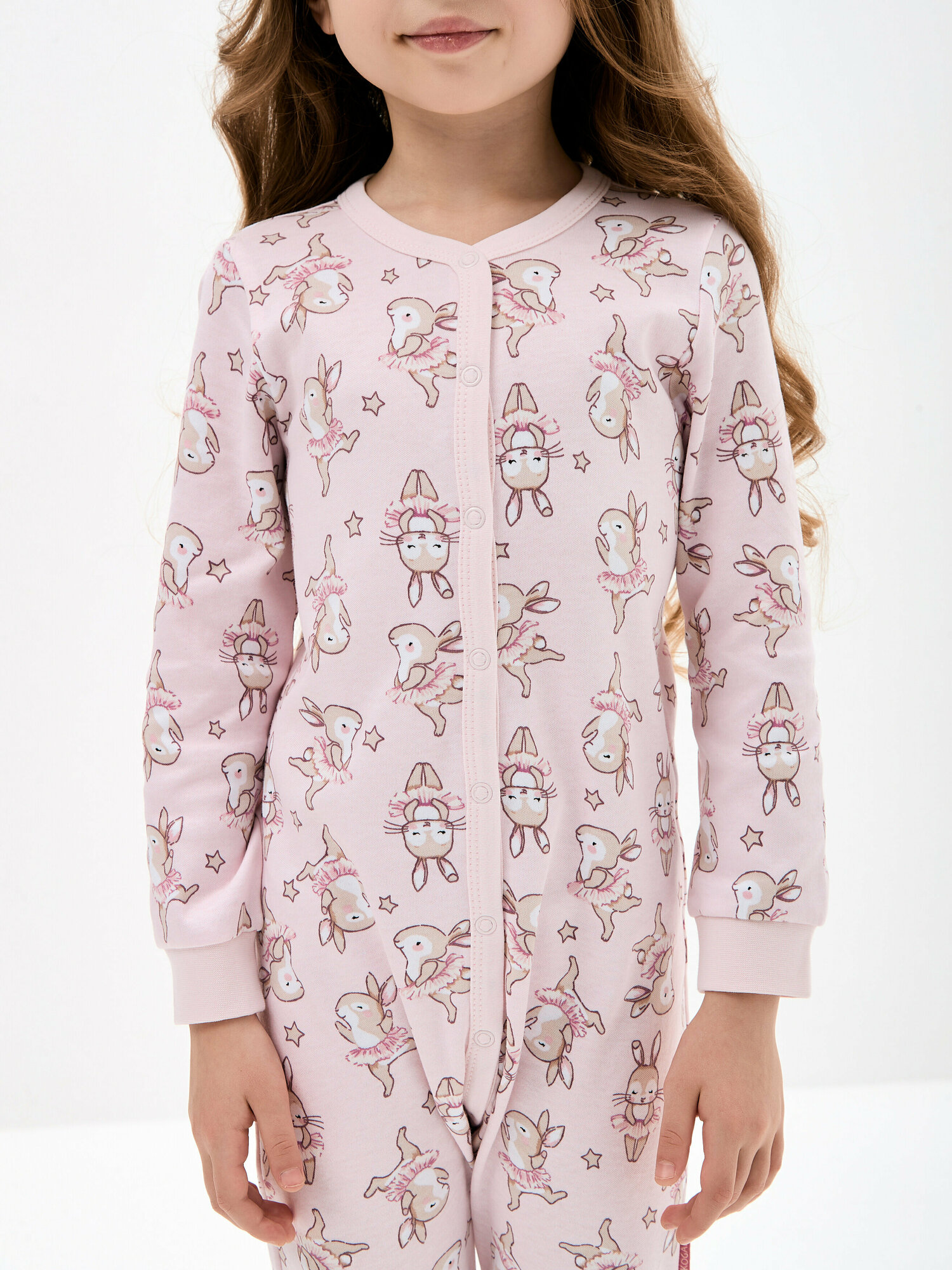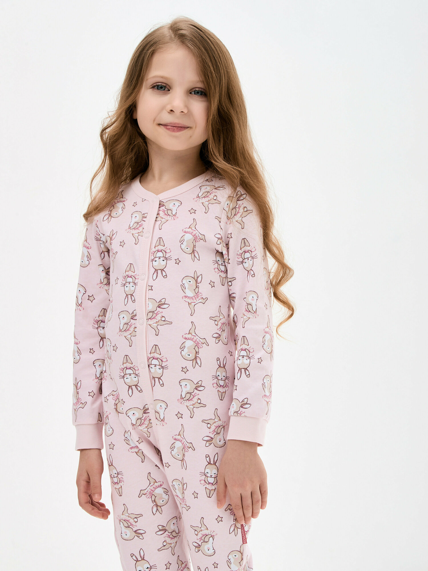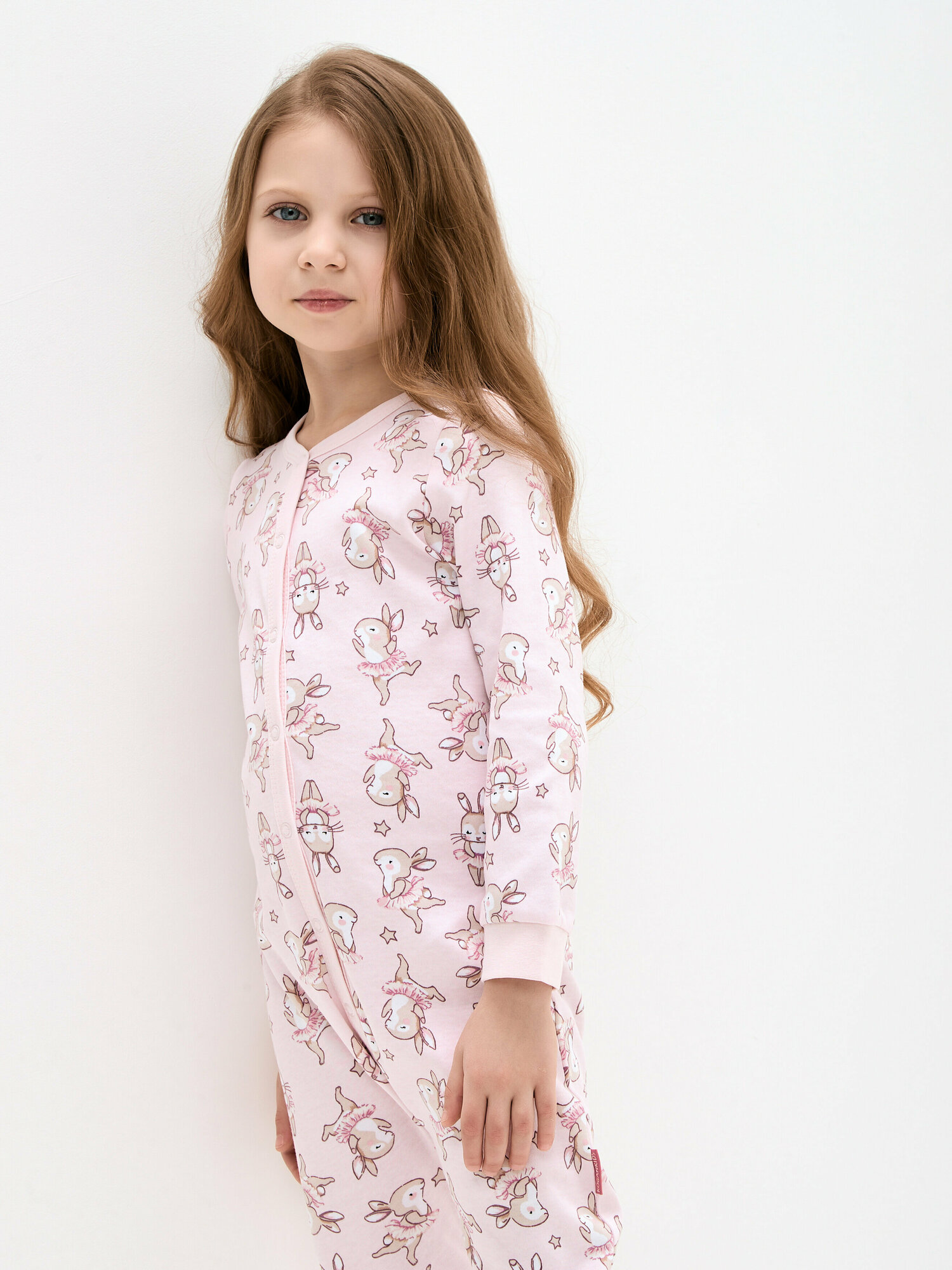 Комбинезон для сна для девочки,KOGANKIDS,пудровый набивка зайчики, 104 / 4 года