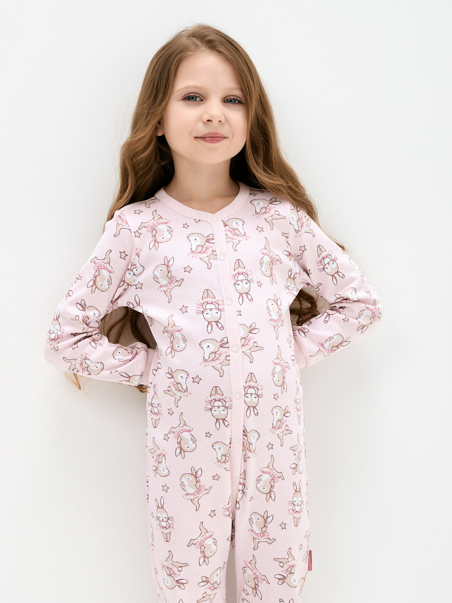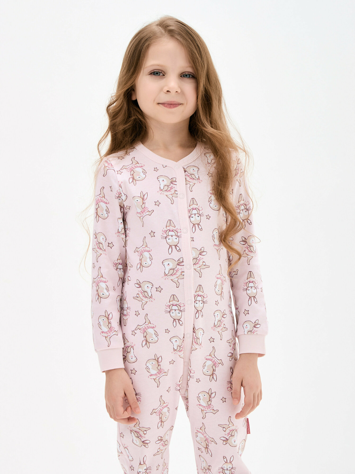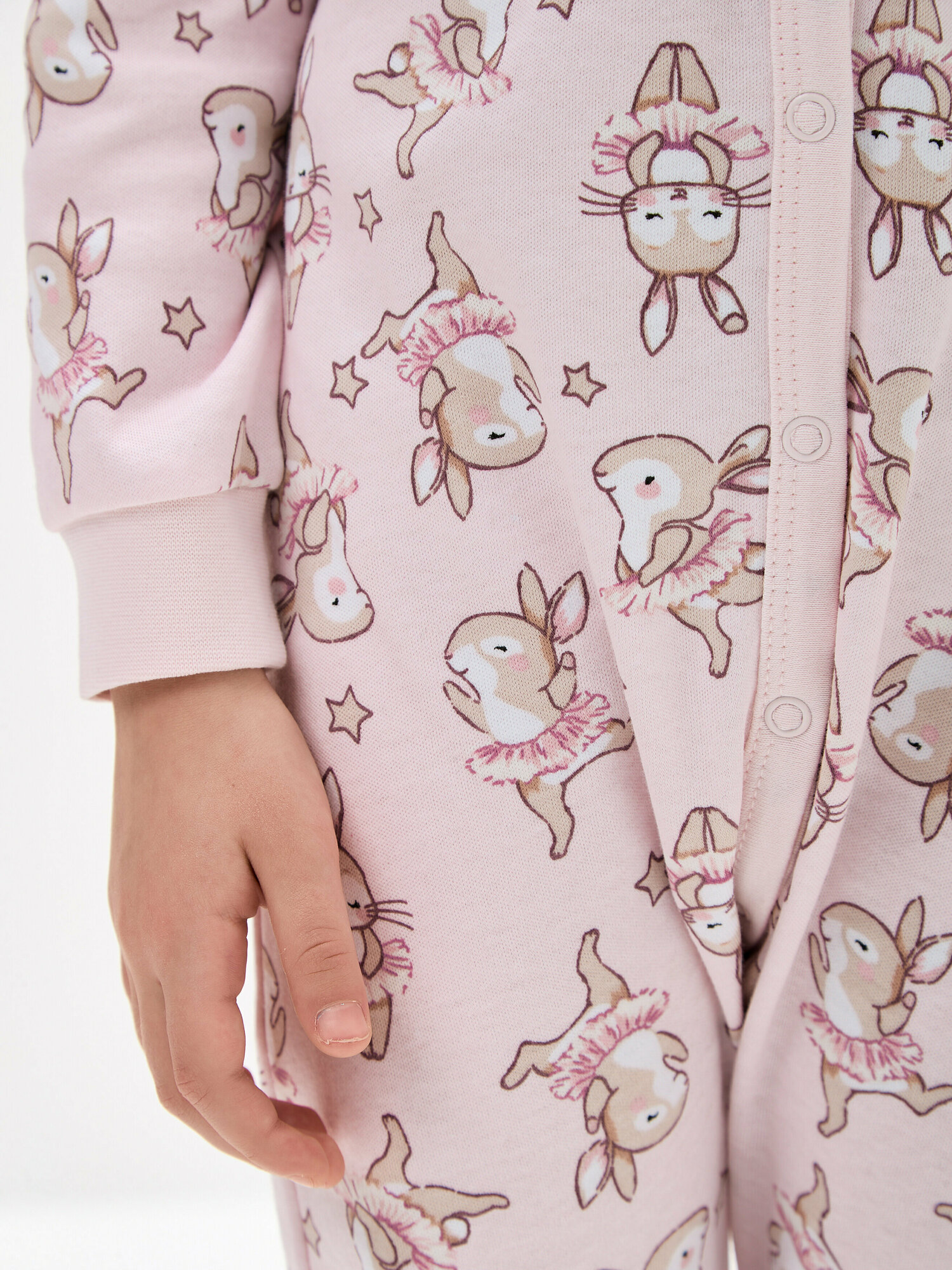 Комбинезон для сна для девочки KOGANKIDS, 371-320-39, пудровый набивка зайчики, 98 / 3 года