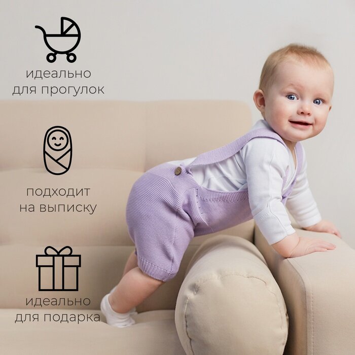 Комбинезон детский вязаный MINAKU, рост 62-68, цвет лавандовый