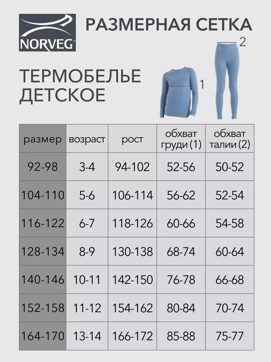 Комплект термобелья для детей NORVEG 116/122 цвет голубой-пепельный