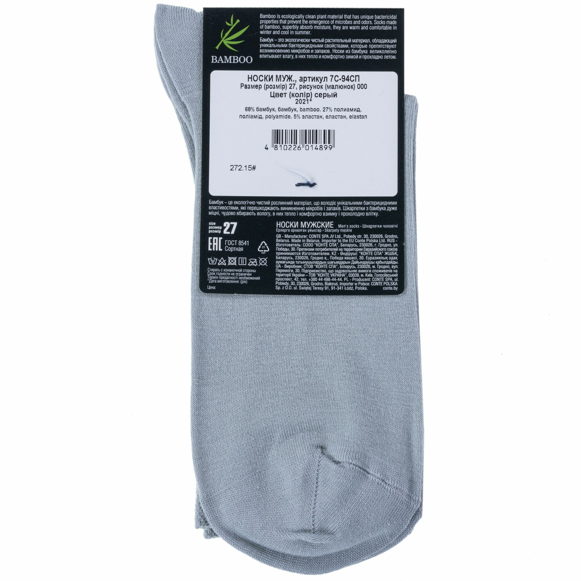 DIWARI Носки муж. BAMBOO 7С-94СП, р.27, 000 серый 1001330110030016000